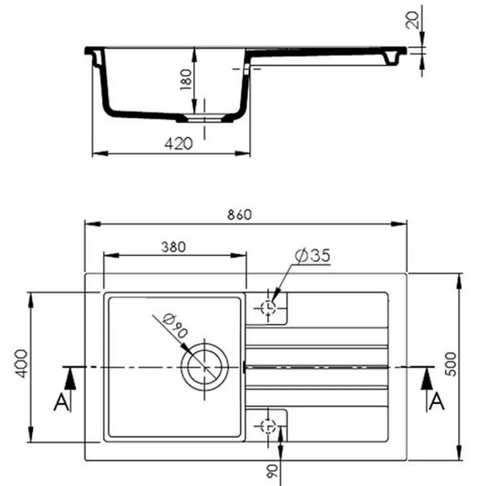 - Évier encastrable 86×50 cm