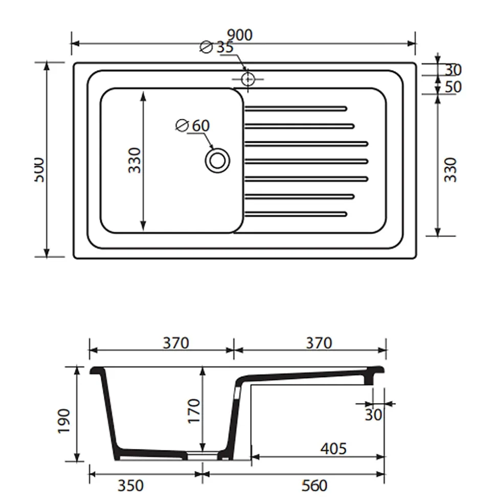 - Évier encastrable 90×50 cm