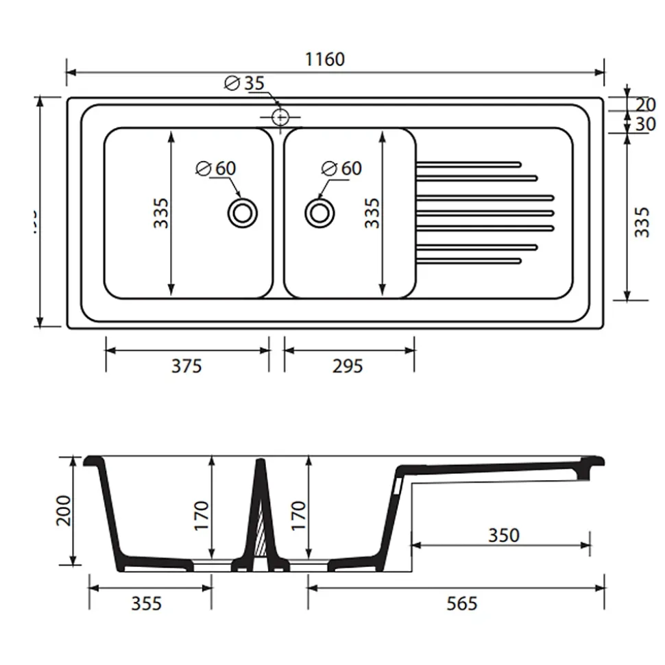 - Évier encastrable 116×50 cm