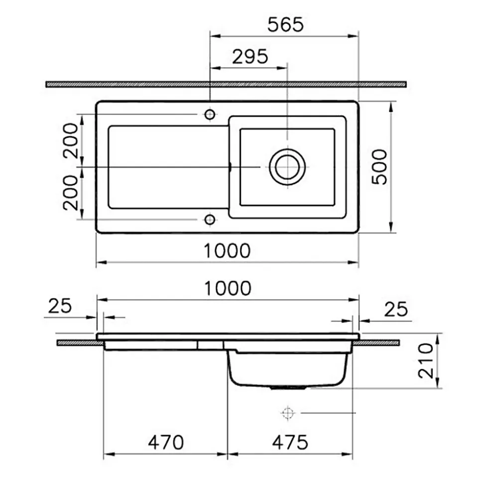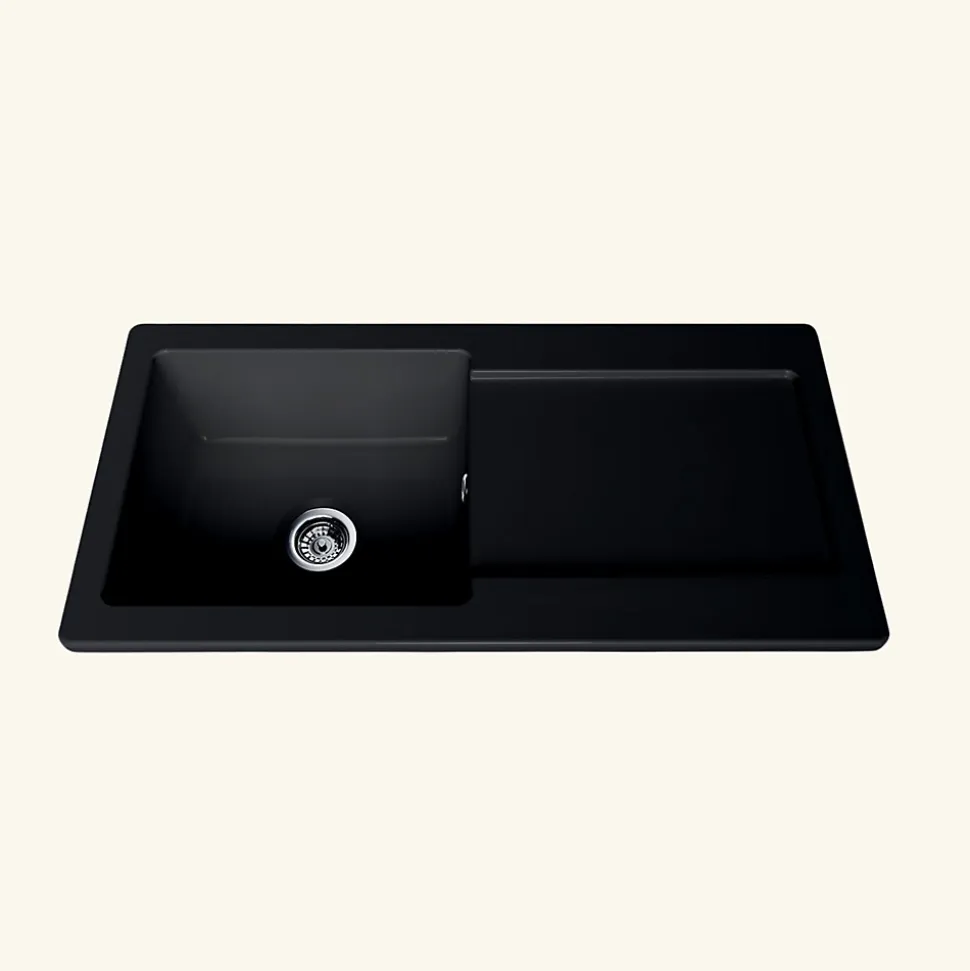 POINTS FORTS : • Évier encastrable 100×50 cm •• Meuble sous évier 80 cm minimum•• Evier vidage manuel •• Évier réversible CARACTÉRISTIQUES : • Équipements inclus : bonde(s), siphon, trop plein, tuyaux d’évacuation • Marque : Vitra • Matériau : Céramique • Type de pose : à encastrer • Positionnement égouttoir : réversible • Coloris : Noir • Emplacement robinetterie : pré-marqué • Nombre de bacs : 1 bac • Poids net (Kg) : 31.5 • Trop plein : oui • Sous-meuble : 80 cm • Longueur (mm) : 1000 • Largeur (mm) : 500 • Longueur d’encastrement (mm) : 970 • Largeur d’encastrement (mm) : 470 • Grande dimension cuve 1 (mm) : 440 • Petite dimension cuve 1 (mm) : 390 • Profondeur cuve 1 (mm) : 210 • Diamètre bonde cuve 1 (mm) : 90 • Grande dimension cuve 2 (mm) : non disponible • Petite dimension cuve 2 (mm) : non disponible • Profondeur cuve 2 (mm) : non disponible • Diamètre bonde cuve 2 (mm) : non disponible • Bon à savoir : Epaisseur minimale pour le plan de travail 38 mm. Trop juste pour un sous-meuble de 60cm car le pré-perçage du mitigeur se retrouve dans la joue de meuble. Sinon raboter la joue du meuble. • Vidage : manuel • Référence vidage : le vidage est déjà inclus