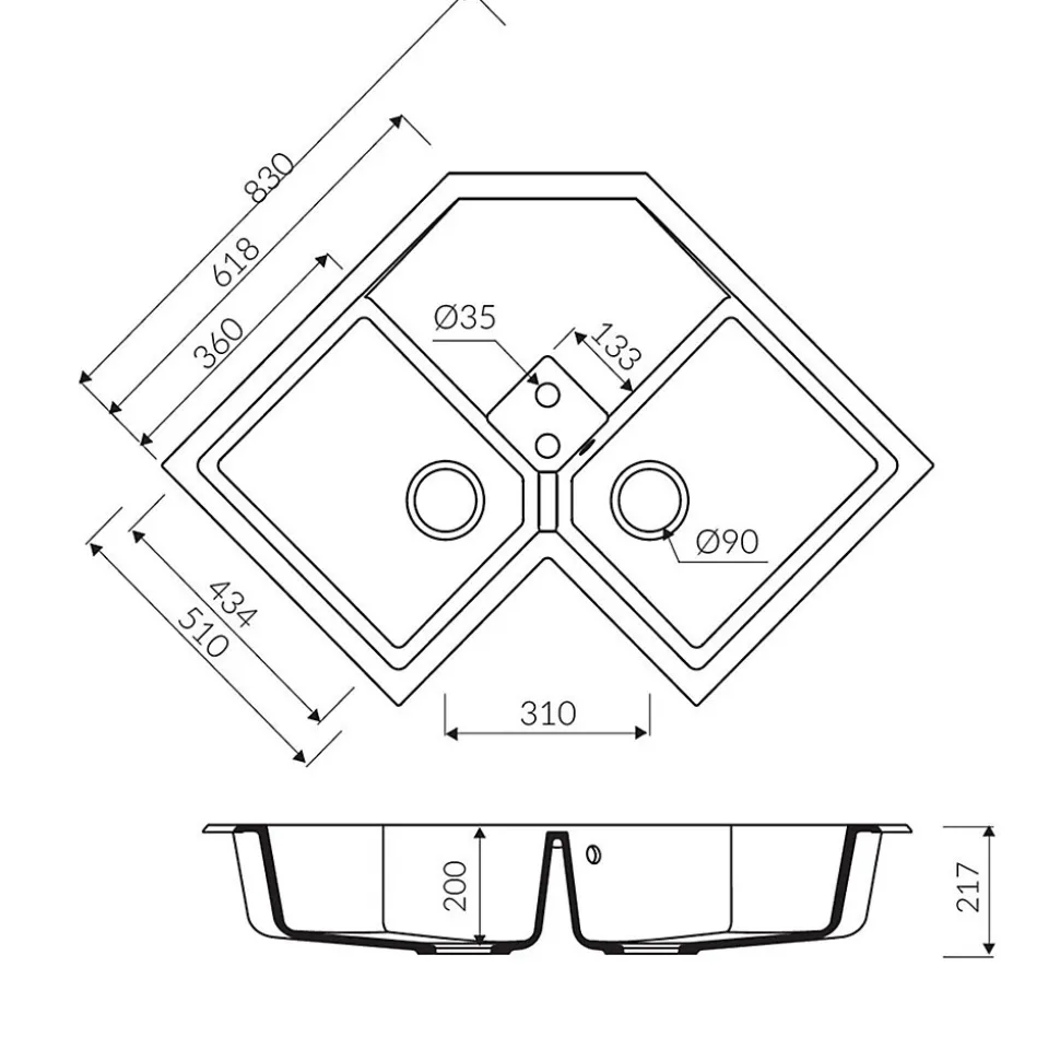 POINTS FORTS : • Évier encastrable 83×83 cm • • Evier vidage automatique • • Meuble sous évier 90 cm minimum • • Évier d’angle CARACTÉRISTIQUES : • Équipements inclus : bonde(s), siphon, trop plein, tuyaux d’évacuation • Marque : Kümbad • Matériau : Granit • Type de pose : à encastrer • Positionnement égouttoir : sans égouttoir • Coloris : Blanc • Emplacement robinetterie : percé • Nombre de bacs : 2 bacs • Poids net (Kg) : 21.4 • Trop plein : oui • Sous-meuble : 90 cm • Longueur (mm) : 830 • Largeur (mm) : 830 • Longueur d’encastrement (mm) : non disponible • Largeur d’encastrement (mm) : • Grande dimension cuve 1 (mm) : 434 • Petite dimension cuve 1 (mm) : 360 • Profondeur cuve 1 (mm) : 200 • Diamètre bonde cuve 1 (mm) : 90 • Grande dimension cuve 2 (mm) : 434 • Petite dimension cuve 2 (mm) : 360 • Profondeur cuve 2 (mm) : 200 • Diamètre bonde cuve 2 (mm) : 90 • Bon à savoir : ce produit ne présente pas de spécificités supplémentaires • Vidage : automatique • Référence vidage : le vidage est déjà inclus