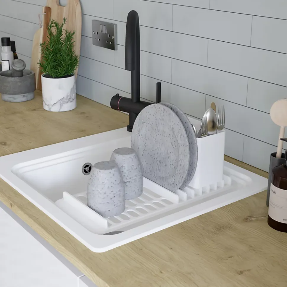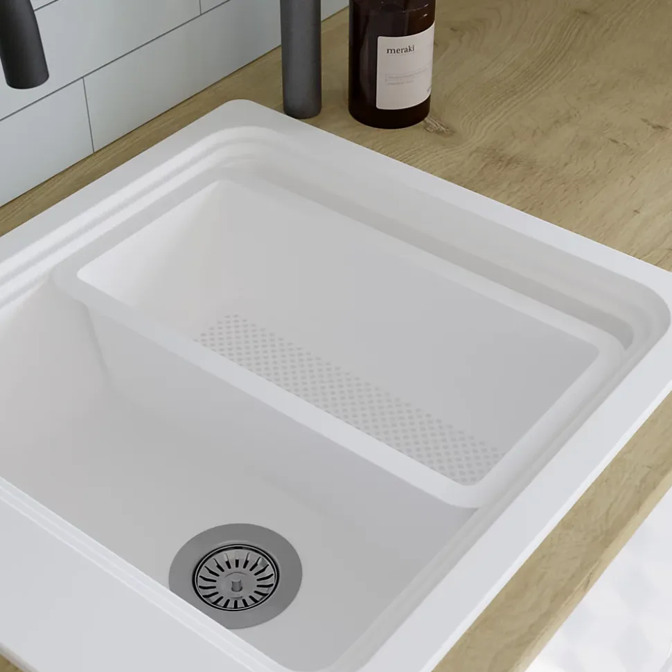 Évier de cuisine 1 cuve en composite de quartz blanc mat avec accessoires Romesco GoodHome