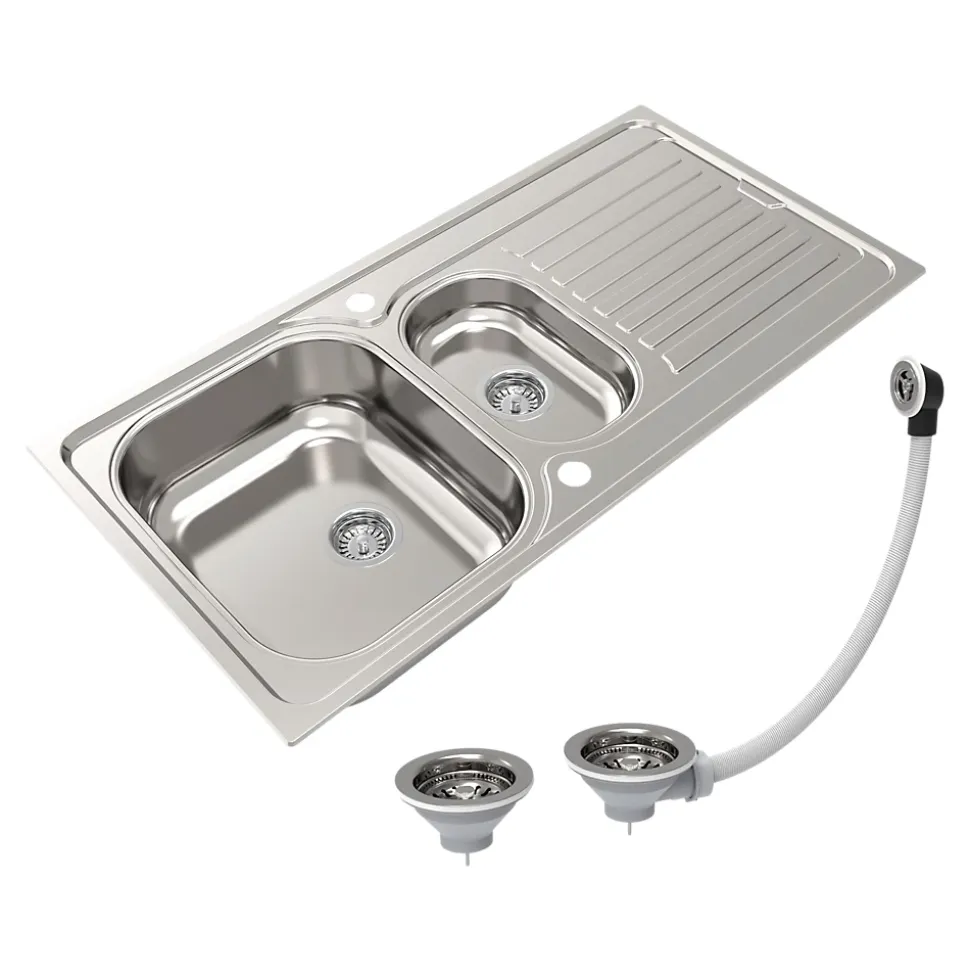 Évier de cuisine 1,5 cuve et 1 égouttoir en acier inoxydable Jabiri