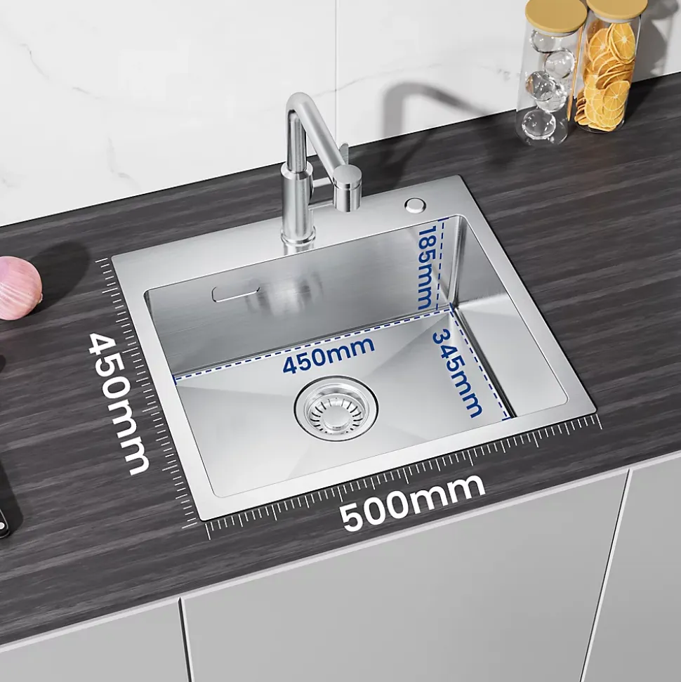 - & Durabilité :Évier en acier inoxydable à finition brossé multicouche, résistant aux rayures et aux taches. Surface lisse, anti-traces et facile à nettoyer, alliant esthétique et robustesse.