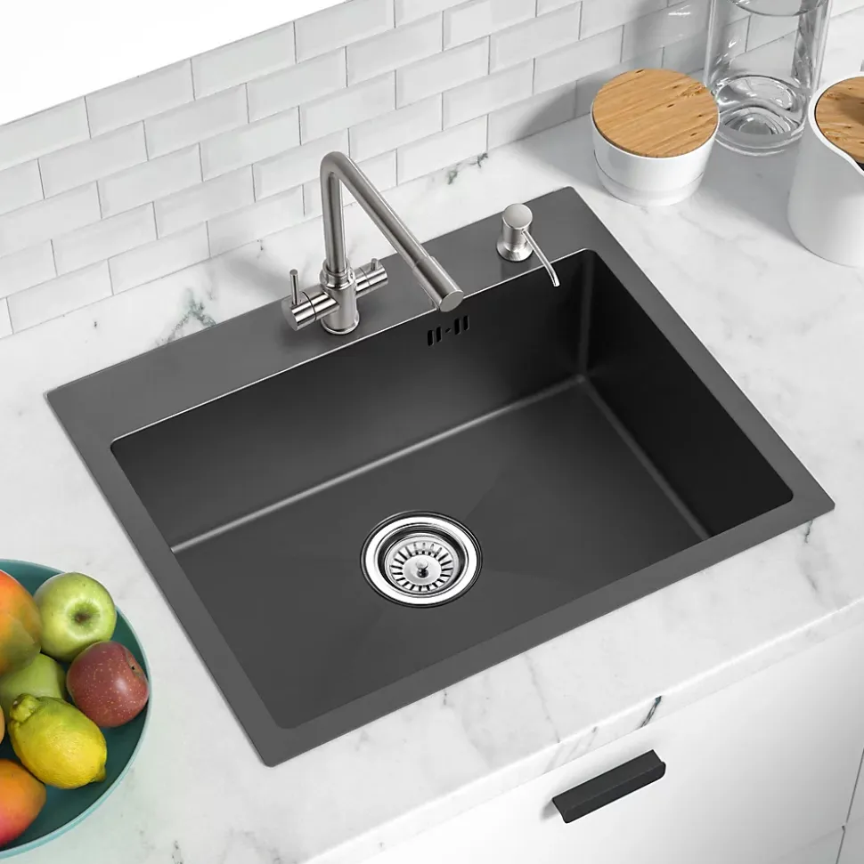 Évier de Cuisine Moderne en Acier Inoxydable 304 – 55×45 cmCet évier de cuisine de taille moyenne (55x45x19 cm) combine élégance et fonctionnalité pour répondre à tous vos besoins culinaires. Fabriqué en acier inoxydable SUS304 de qualité alimentaire, il offre une excellente résistance aux rayures, à la corrosion et une facilité d’entretien incomparable.