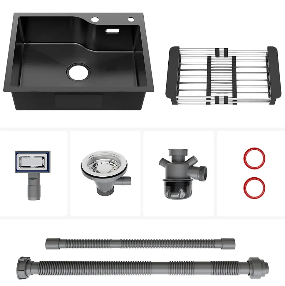 - ✔ Installation flexible et accessoires inclus : Compatible avec pose en applique ou encastrable, livré avec panier égouttoir et filtre de vidange en acier inox 304.