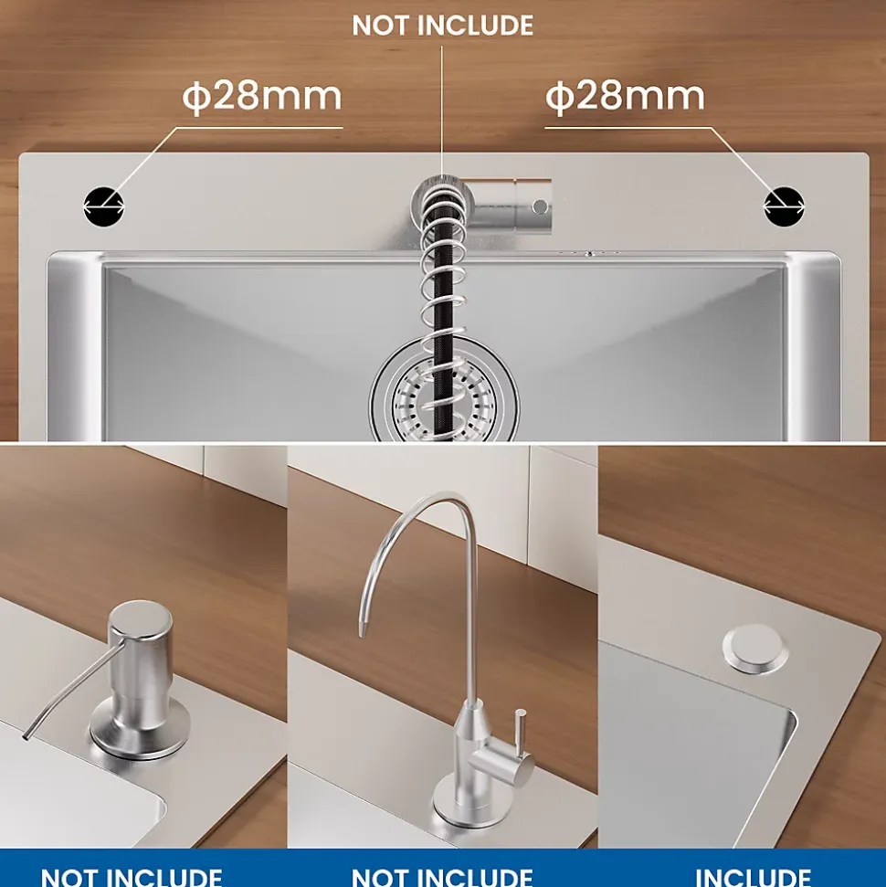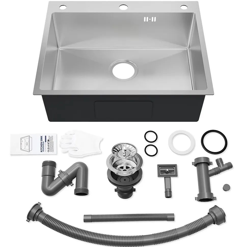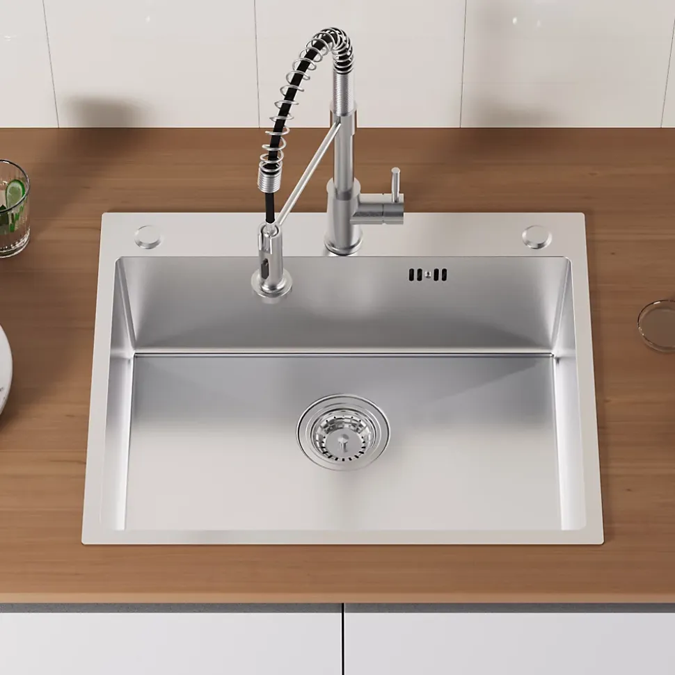 Ce modèle d’évier de cuisine en acier inoxydable SUS 304 (qualité alimentaire) allie robustesse, hygiène et design fonctionnel. Avec des dimensions de 60*49*20 cm et un bac de 56*39*19 cm, il s’installe en pose sur ou sous plan (ou encastré). Son épaisseur de 3 mm (panneau) et 0,8 mm (bac) garantit une résistance anti-déformation, tandis que les angles R2 et le revêtement nano antibactérien facilitent l’entretien. Doté d’une couche anti-condensation et d’une isolation EVA pour réduire le bruit, il intègre aussi un filtre à déchets en inox, un tuyau de drainage ajustable à 360° et un système en V pour une évacuation rapide et sans obstruction. Conforme à la norme européenne EN 13310, cet évier est idéal pour une cuisine pratique et silencieuse.