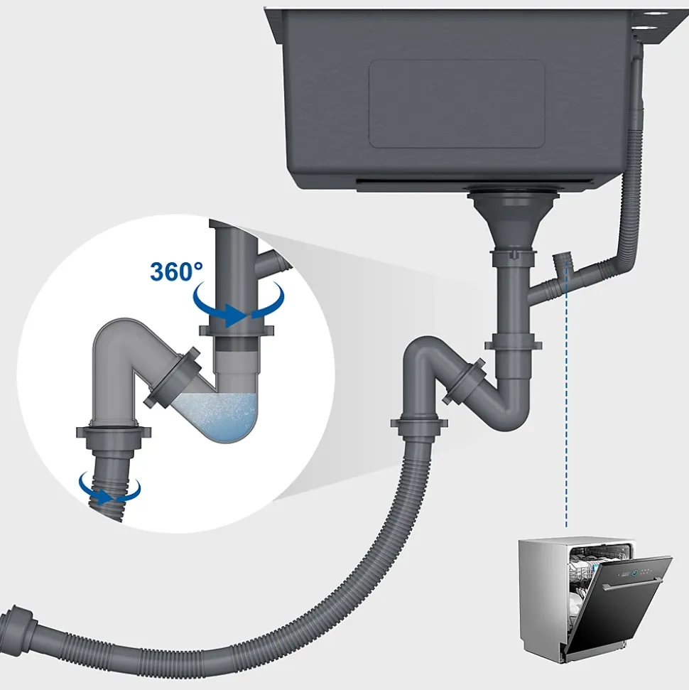 - ✔ Installation flexible : Compatible pose sur/sous plan, avec tuyau de drainage rotatif à 360° pour s’adapter à votre espace.