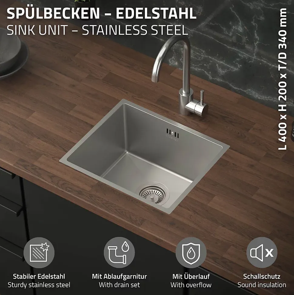 Description du produit :Ton nouvel atout pour la cuisine : évier encastré en acier inoxydable (40 x 34 cm) avec insonorisation et protection contre la condensation.Donne à ta cuisine une mise à jour moderne avec cet évier encastré en acier inoxydable de haute qualité (40 x 34 cm) et profite du confort de solutions de cuisine fonctionnelles ! Cet évier convainc par son design intemporel, ses Livraison, de sorte que tu peux utiliser ton évier immédiatement après le montage.Contenu de la livraison :1 x évier1 x garniture d’écoulement et de trop-pleinAttention : un robinet n’est pas inclus dans la livraison !