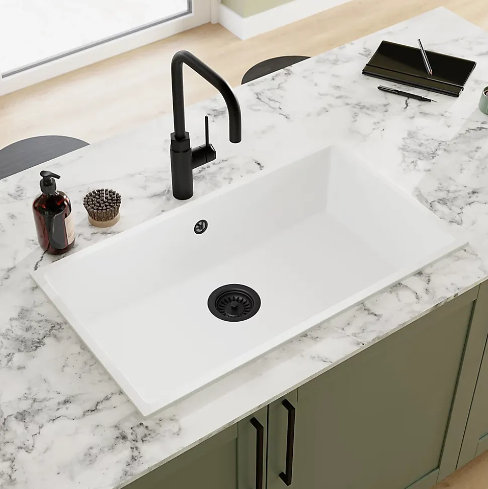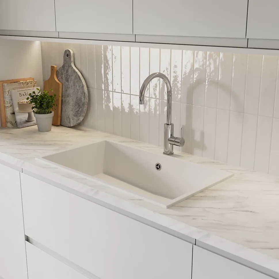 Évier de cuisine en composite de quartz blanc 1 bac à encastrer GoodHome Sorrel