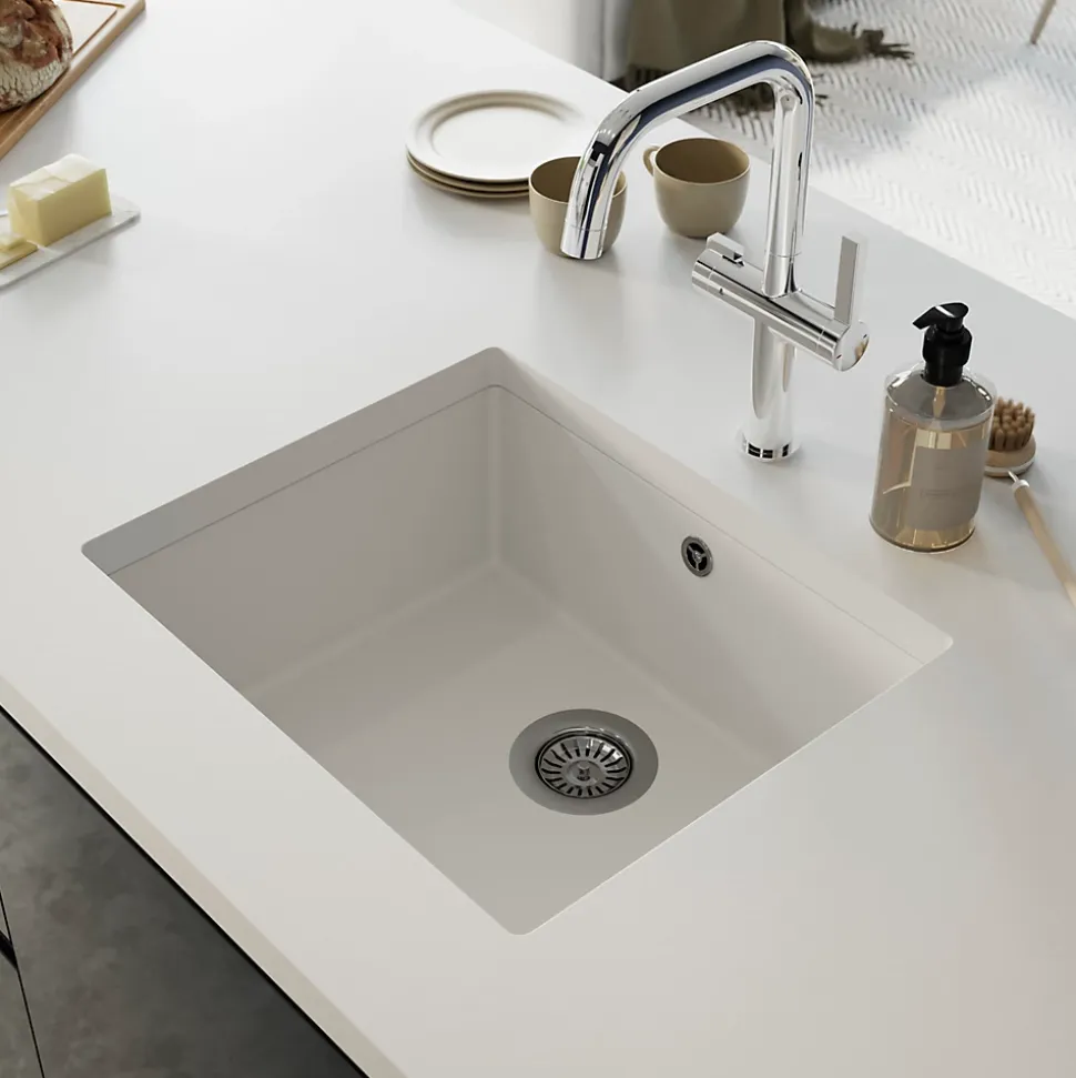Sublimez votre cuisine avec l’évier sous-plan blanc GoodHome Sorrel. Conçu pour une installation sous-plan, cet évier en composite facile à nettoyer offre une durabilité à toute épreuve. Sa résistance aux rayures et aux taches en fait une solution pratique pour les maisons pleines de vie. Garanti 15 ans.