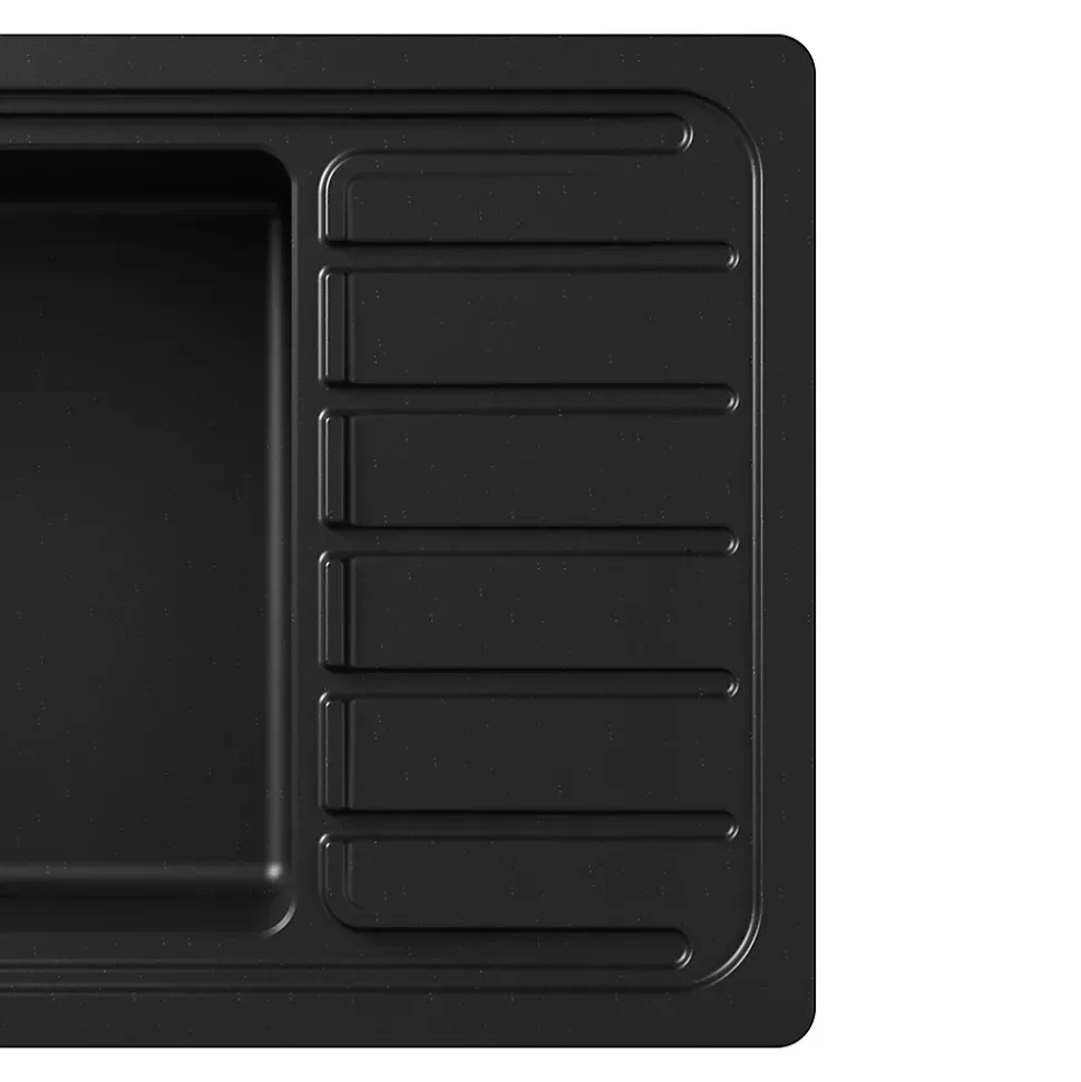 Évier de cuisine en composite de quartz noir 1 bac à encastrer GoodHome Romesco + égouttoir