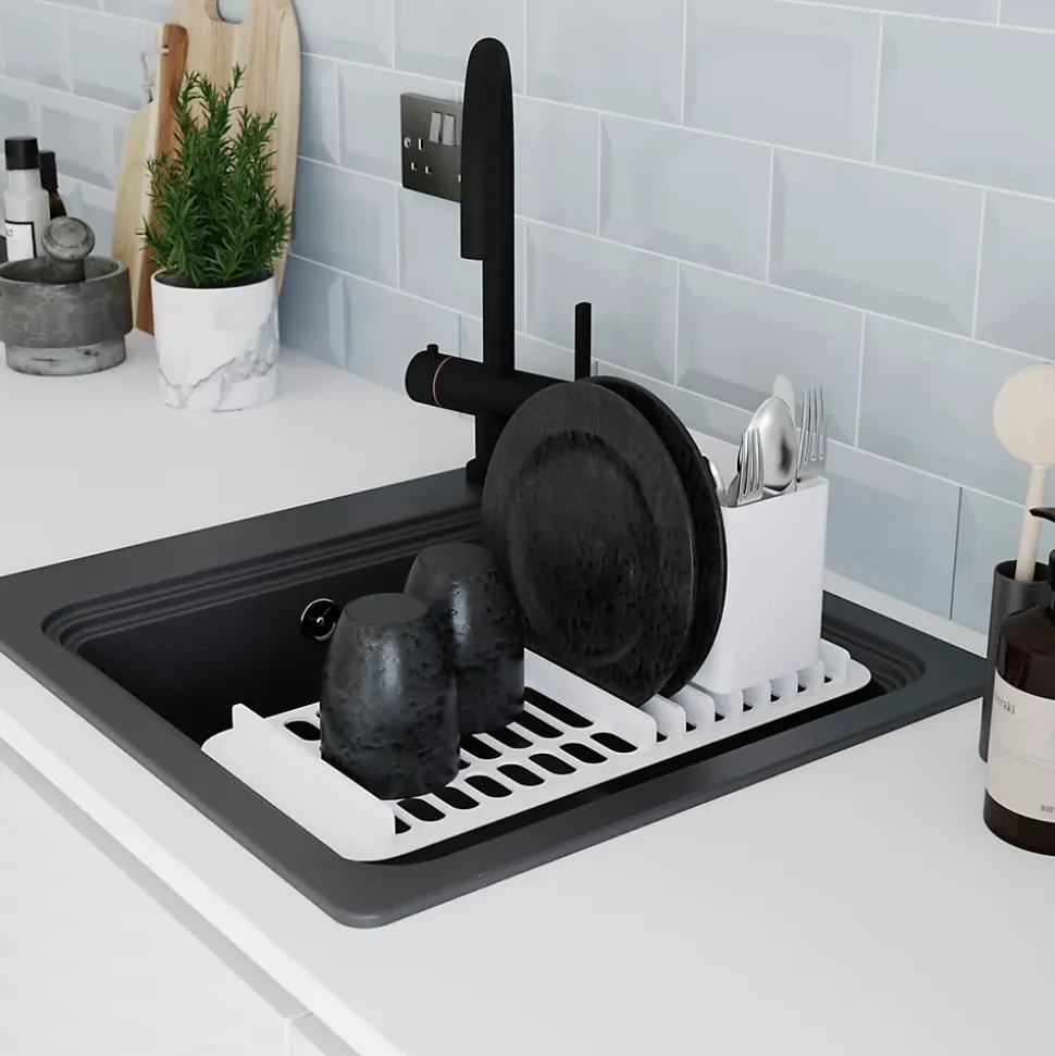Le design compact de l’évier Romesco associé à des accessoires d’évier intégrés innovants crée un système d’évier intelligent et unique qui maximise la fonctionnalité, le tout en’un évier compact. Les accessoires d’évier intégrés permettent des tâches fonctionnelles clés telles que la préparation des aliments, le lavage et le séchage à l’intérieur de la cuve d’évier, vous économisant ainsi un espace précieux sur votre plan de travail.