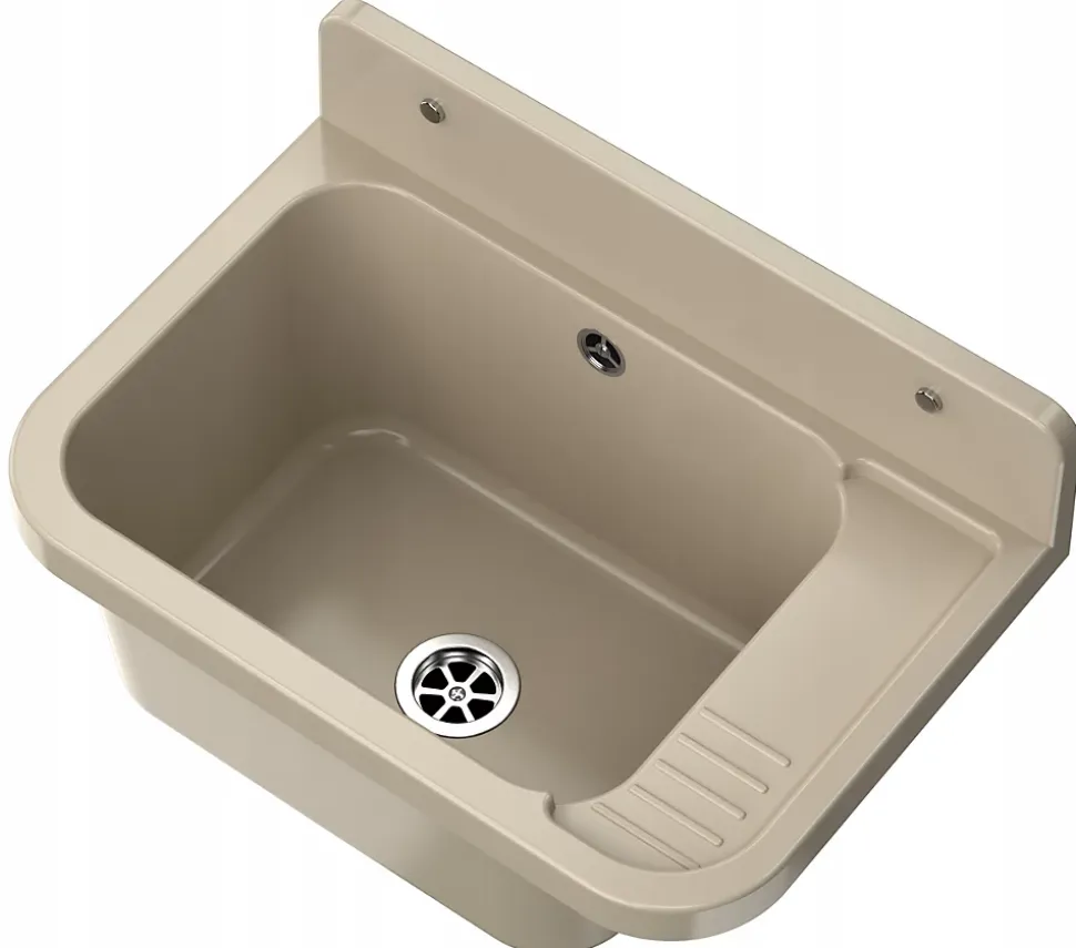 Découvrez l’évier robuste Paron Granitan pour votre garage ou buanderieVous recherchez un évier solide et fiable, pratique et stylé ? L’évier Paron Granitan, avec sa finition élégante beige, est le choix parfait pour votre garage, buanderie, atelier ou tout autre espace fonctionnel. Fabriqué en polypropylène durable, cet évier résiste aux produits chimiques et aux hautes températures, en faisant une solution idéale pour une utilisation intensive, aussi bien à domicile que dans des espaces publics.Caractéristiques principalesDimensions : 50 cm x 34 cm x 31 cmMatériau : Polypropylène résistant aux produits chimiquesCouleur : BeigeForme : RectangulaireNombre de bacs : 1Type : EncastréInclus : Évier, siphon, kit de montageExtras : Possibilité de percer des trous pour un robinet ou un distributeur de savonPoids avec emballage : 2 kgPolyvalence et facilité d’utilisationFacile à installer, l’évier Paron Granitan s’adapte à différents environnements. Sa conception robuste lui permet de résister aux niveaux élevés de chaleur et aux substances chimiques agressives. Que ce soit pour une utilisation murale ou avec des robinets sur pied, cet évier offre flexibilité et praticité. L’ajout des accessoires nécessaires au montage, comme le siphon et le kit, facilite encore davantage son installation.Pourquoi choisir l’évier Paron Granitan ?L’évier Paron Granitan se distingue par sa durabilité et sa fonctionnalité soigneusement pensée pour les utilisations quotidiennes. C’est une solution idéale pour ceux qui recherchent un produit robuste et esthétique, parfait pour aménager un espace de travail efficace et pratique. Choisissez la qualité avec cet évier polyvalent et résistant, conçu pour répondre à vos besoins fonctionnels et esthétiques.
