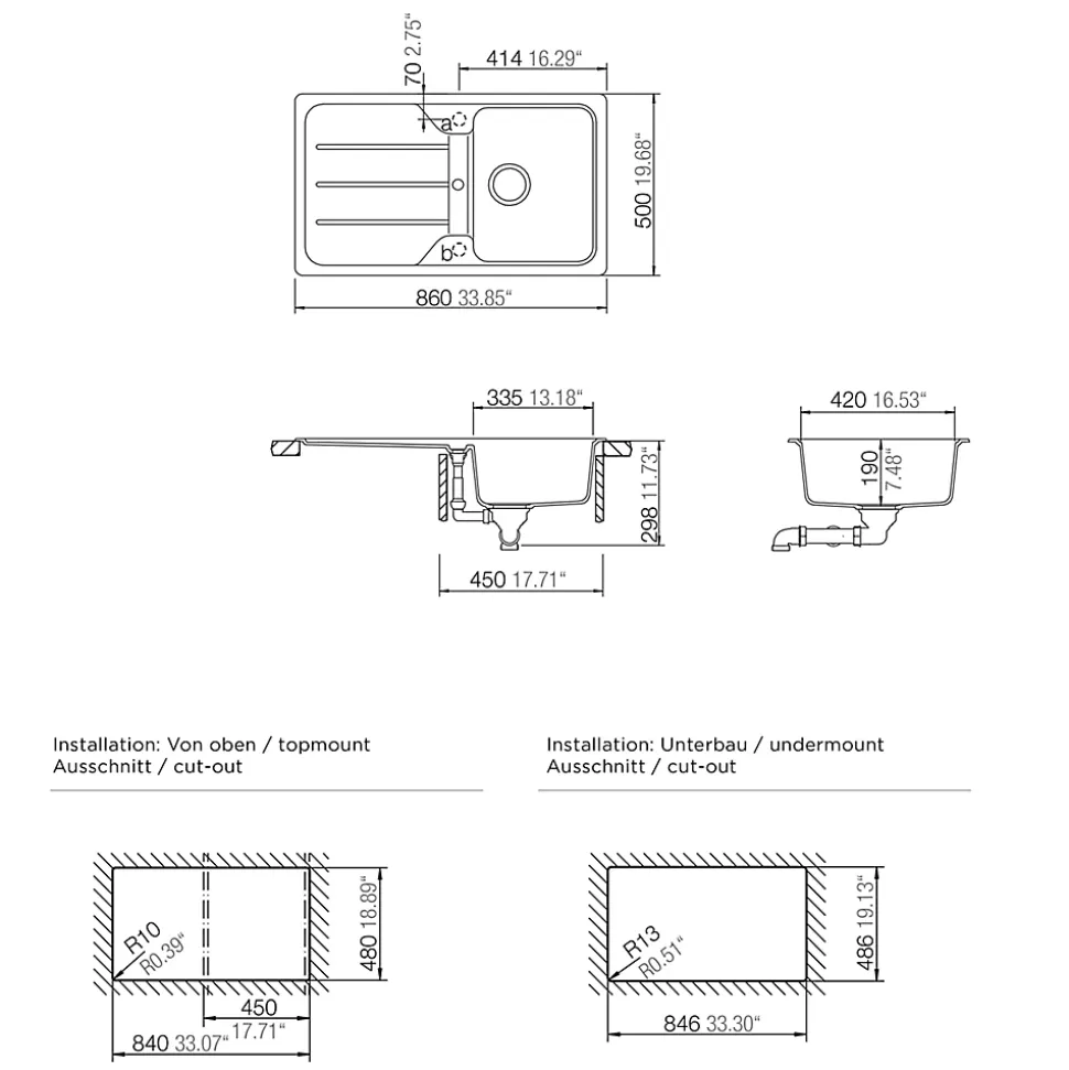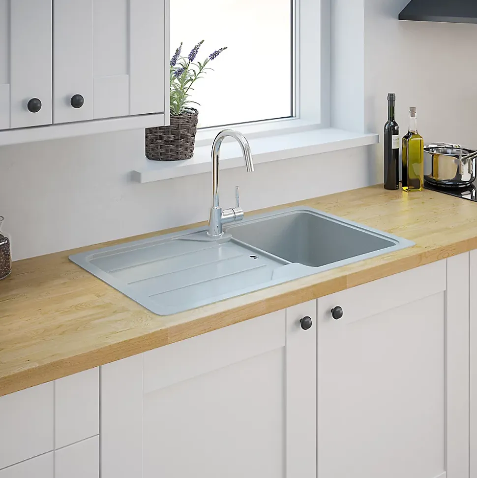 Évier en composite de quartz blanc 1 bac à encastrer Arber