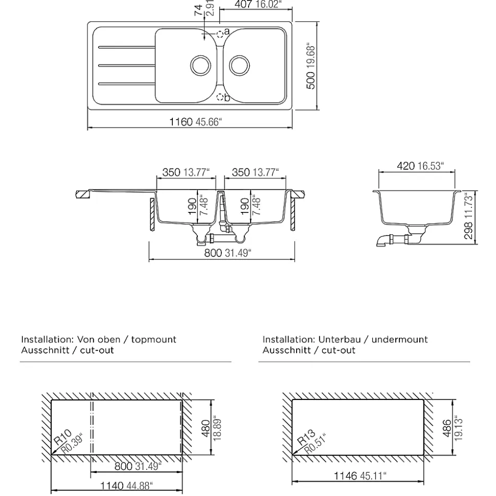 - Dimensions encastrement (cm) : L. 114 x l. 48