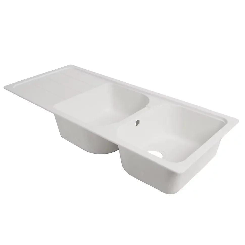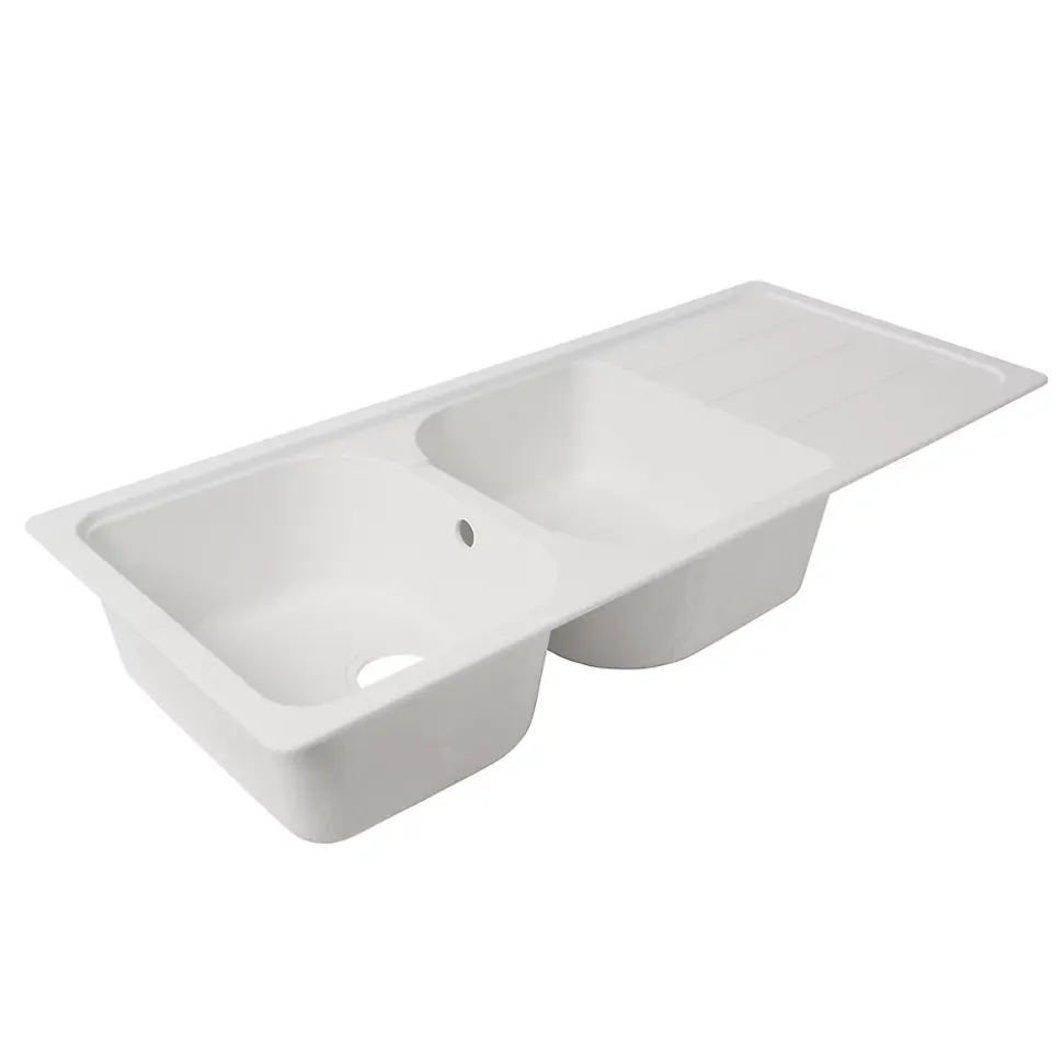 Évier en composite de quartz blanc 2 bacs à encastrer Arber