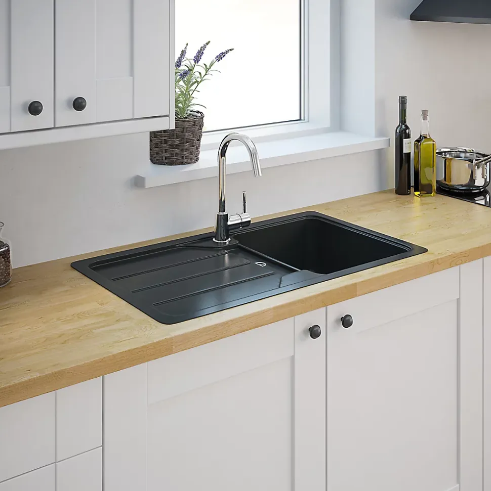 Évier en composite de quartz noir 1 bac à encastrer Arber