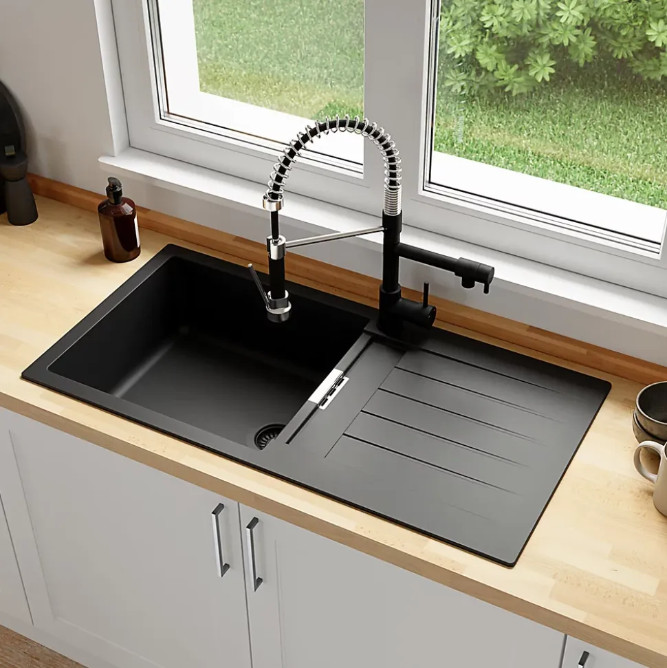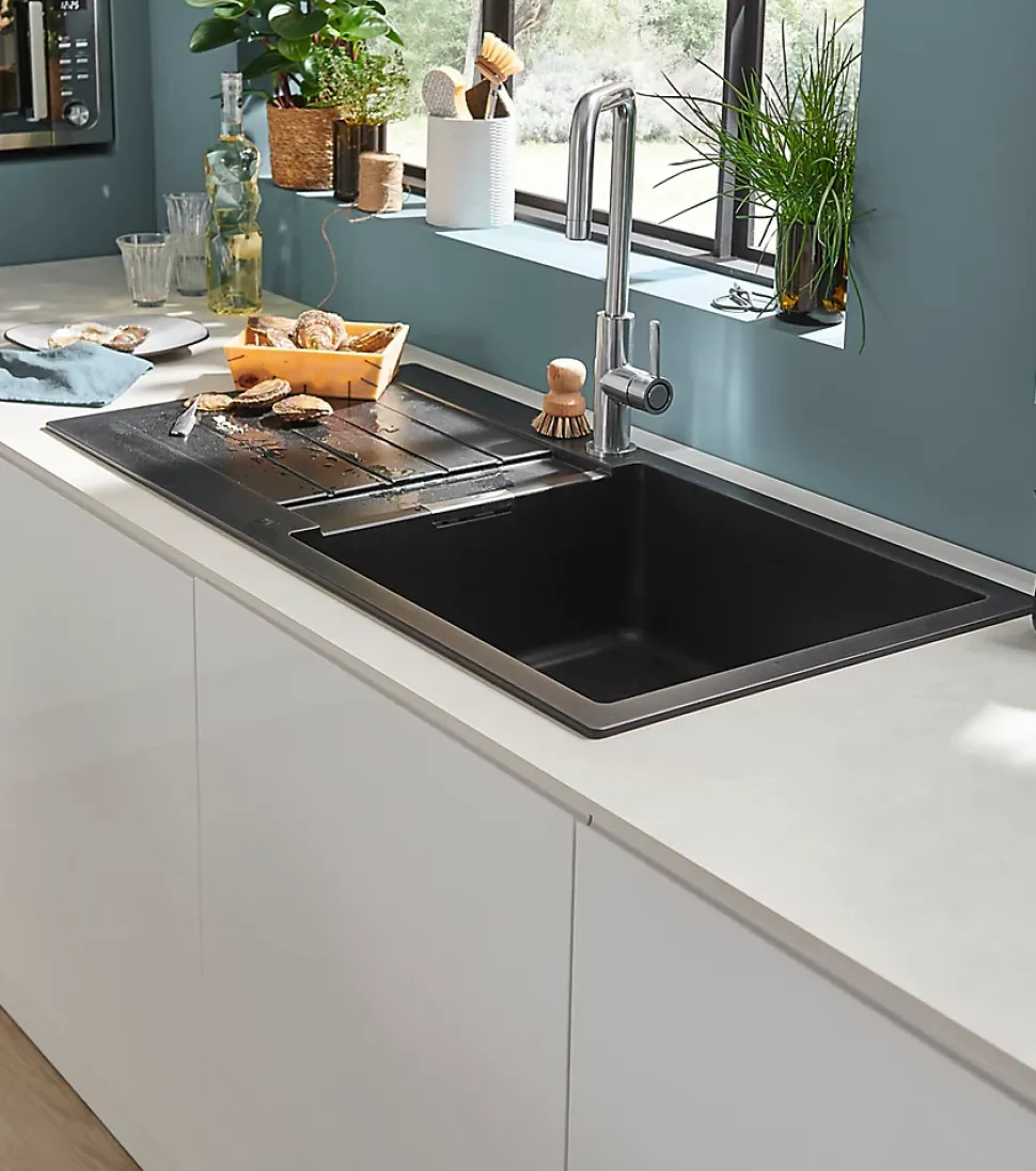 - Cet évier en composite très robuste peut résister à presque tous les aléas d’une cuisine animée