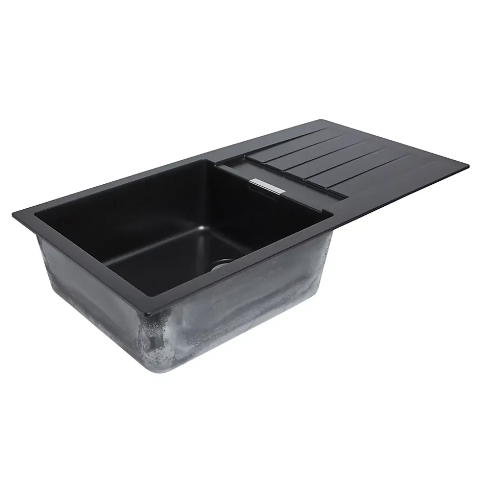 Évier en composite quartz noir 1 bac + égouttoir Cooke & Lewis Galvani