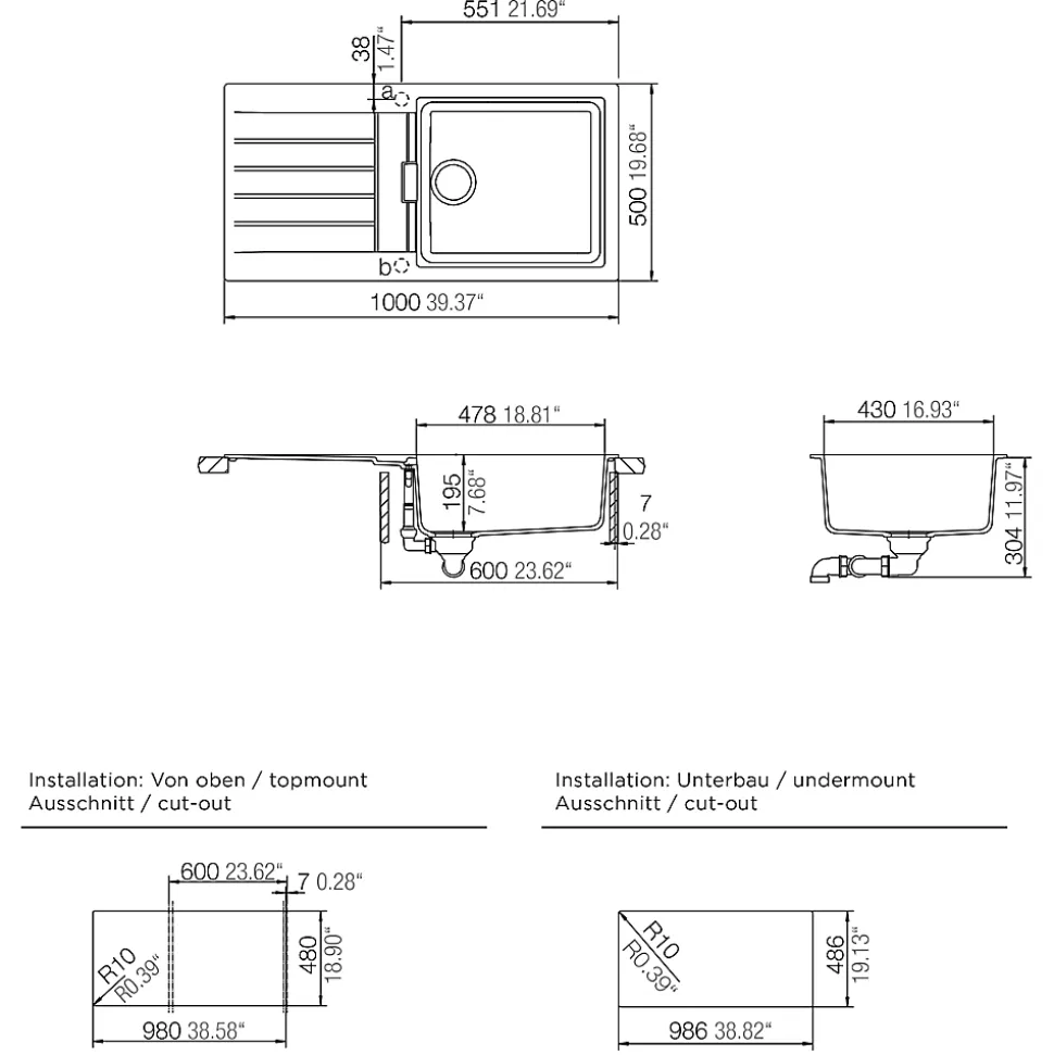 - L’évier comprend un égouttoir et est donc idéal pour ceux ayant besoin d’espace pour sécher la vaisselle