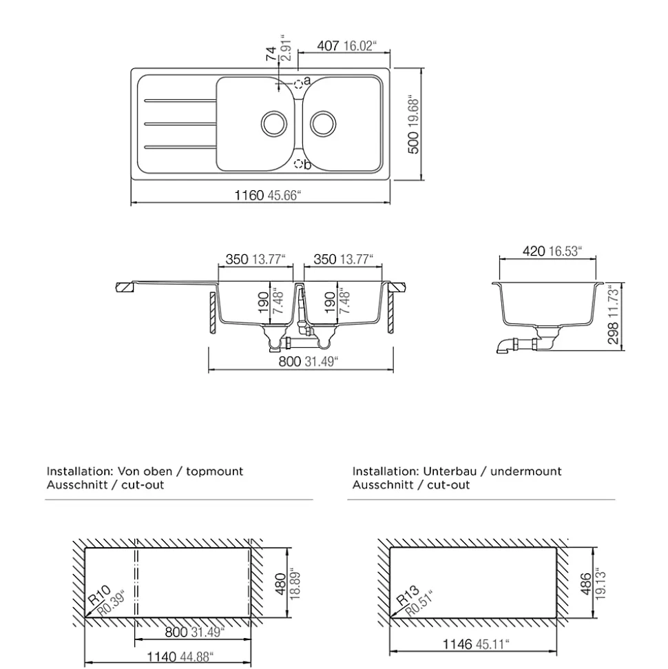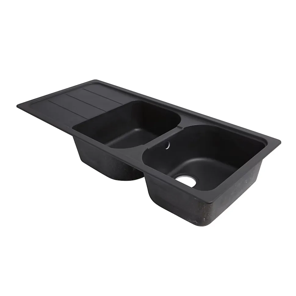 Évier en composite de quartz noir 2 bacs à encastrer Arber