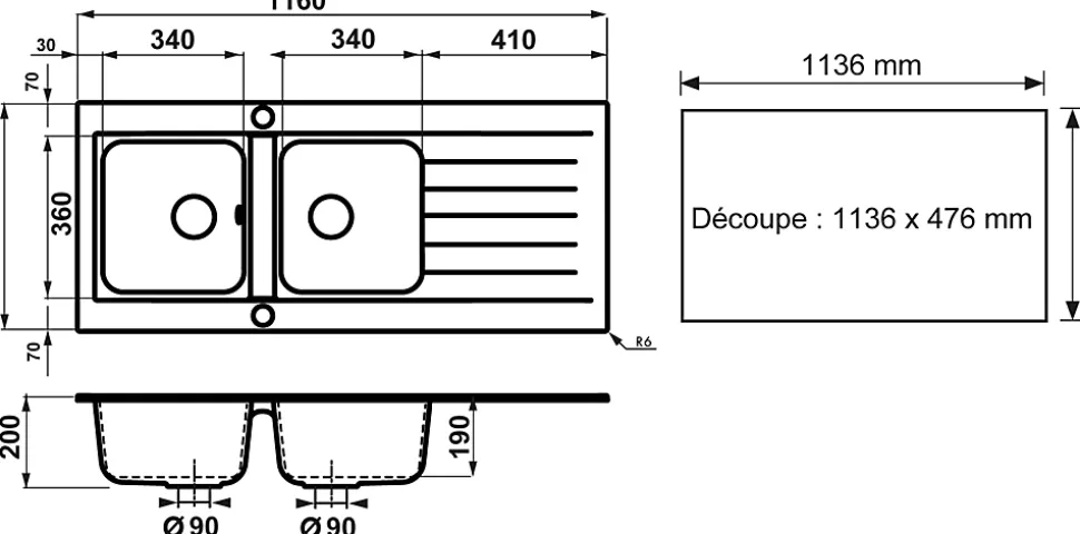 - Grande capacité : avec une cuve spacieuse et un égouttoir intégré, cet évier maximise l’espace de travail et facilite le lavage de la vaisselle.