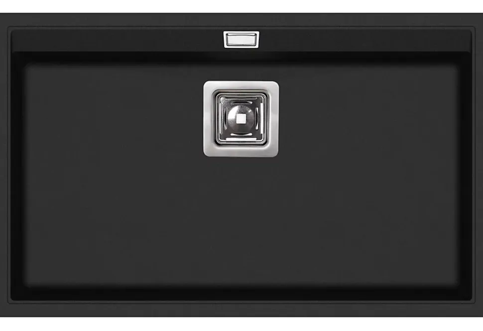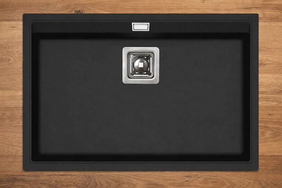 Evier de cuisine au design moderne et épuré, à encastrer ou a intégré sous plan.Cuve rectangulaire encastrée, aux lignes droites et nettes, de couleur foncé, offrant un bon contraste avec un plan de travail clair.Bords fins et affleurants, ce qui renforce l’esthétique minimaliste et facilite le nettoyage.Système de vidage discret, avec une bonde carrée et un trop-plein intégré, cohérents avec le design moderne.Evier 1 bac rectangle sans égouttoir. NOIR. Dimension 740X455X200mm (bac:690X405X200). Fourni sans mitigeur avec vidage manuel. Granit: 80% quartz naturel, 20% résine acrylique. Type de pose: à encastrer ou sous-plan (sous-évier de 80cm minimum). Pose du mitigeur: déportée sur le plan de travail. Garantie 15ans.