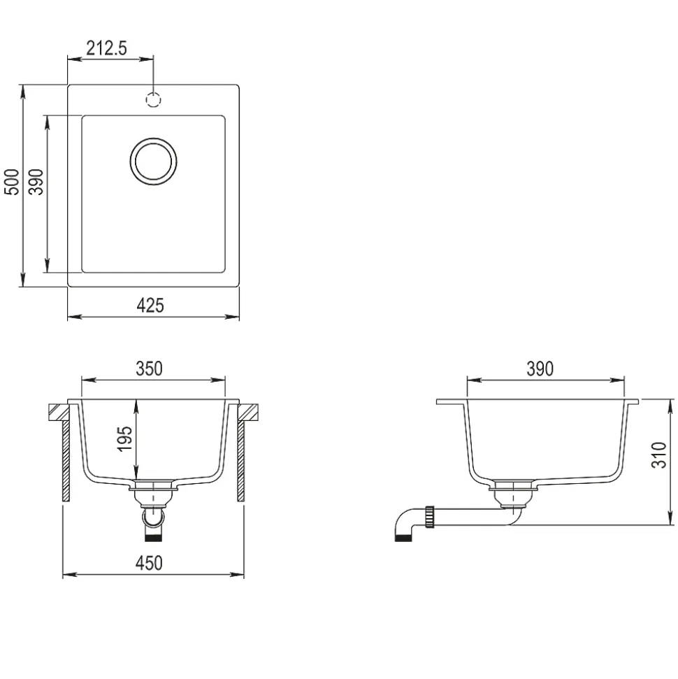 Evier en granit 1 bac sans égouttoir – granit BLANC – SIMPLEX