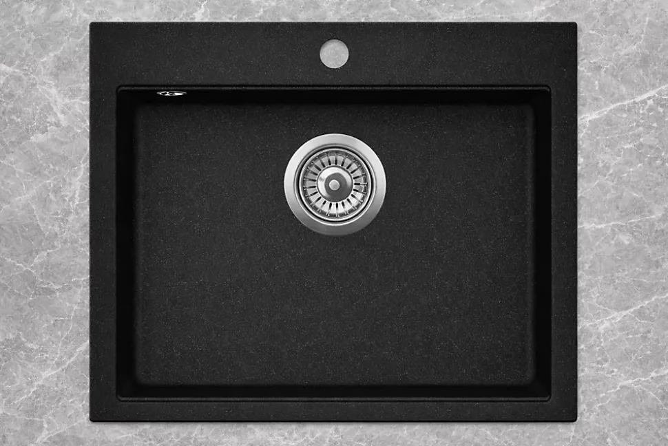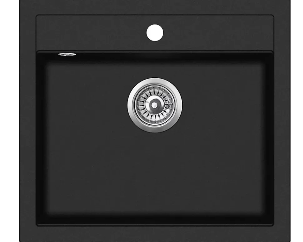 Evier au style moderne, épuré et chaleureux.Type d’évier : évier à encastrer, à cuve unique, de forme rectangulaire aux angles légèrement arrondis.Matériau et couleur : Granit de synthèse, de couleur NOIR, ce qui lui donne un aspect très contemporain.Cet évier s’intègre harmonieusement dans une cuisine aux façades en bois et aux lignes minimalistes, renforçant une ambiance naturelle et haut de gamme.Evier à la fois fonctionnel, élégant et parfaitement adapté à une cuisine contemporaine.Evier 1 bac carré sans égouttoir. En granit NOIR. Dimension totale:565X510mm (bac:495x357x200). Fourni sans mitigeur avec vidage manuel. Granit: 80% quartz naturel, 20% résine). Pour un meuble sous évier de 60cm minimum. Garantie 15ans.