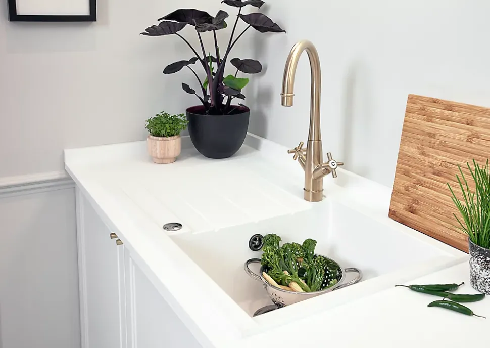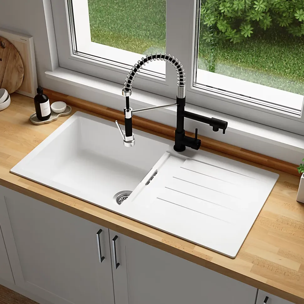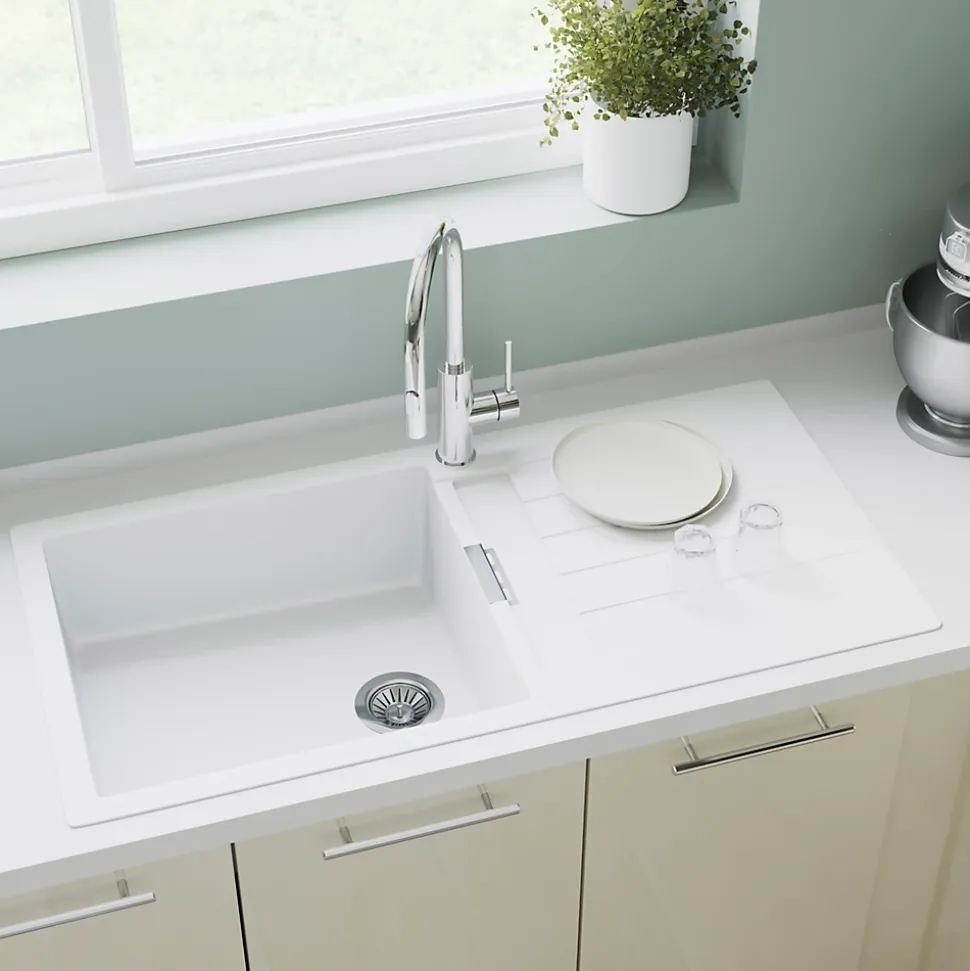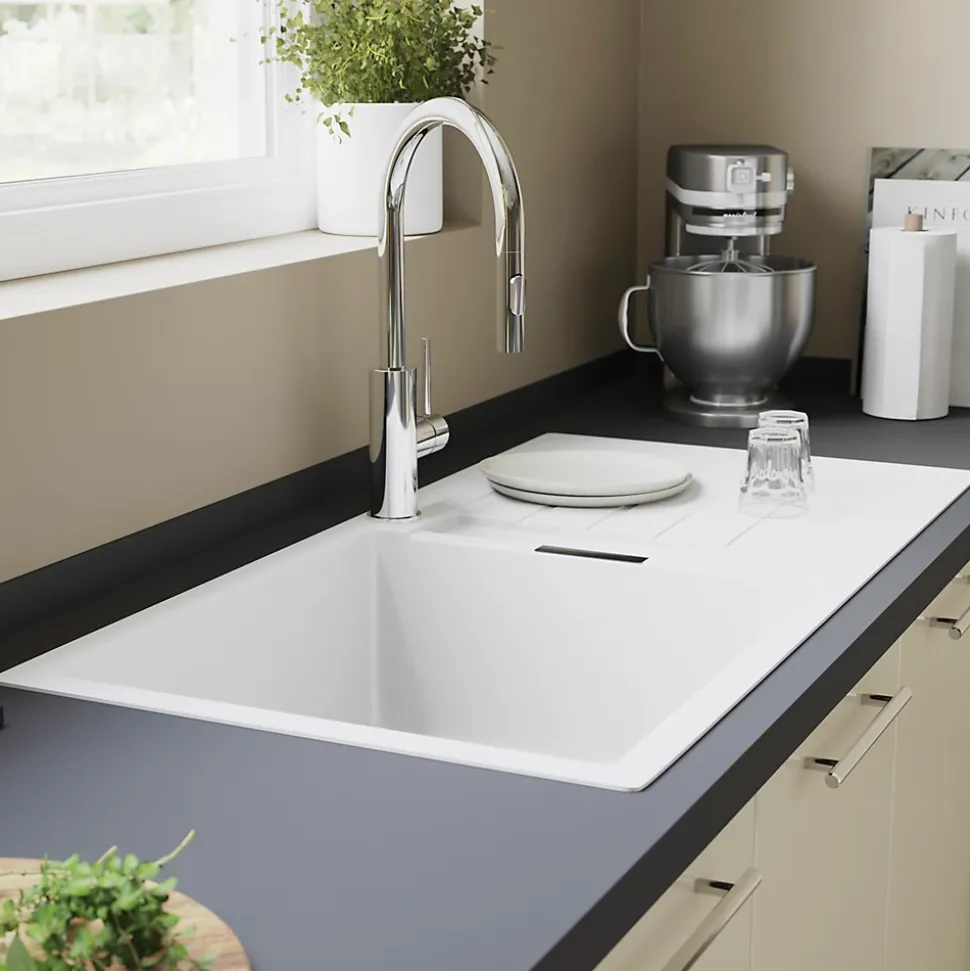 - Cet évier en composite de quartz ultra-résistant peut résister à presque tous les aléas d’une cuisine animée