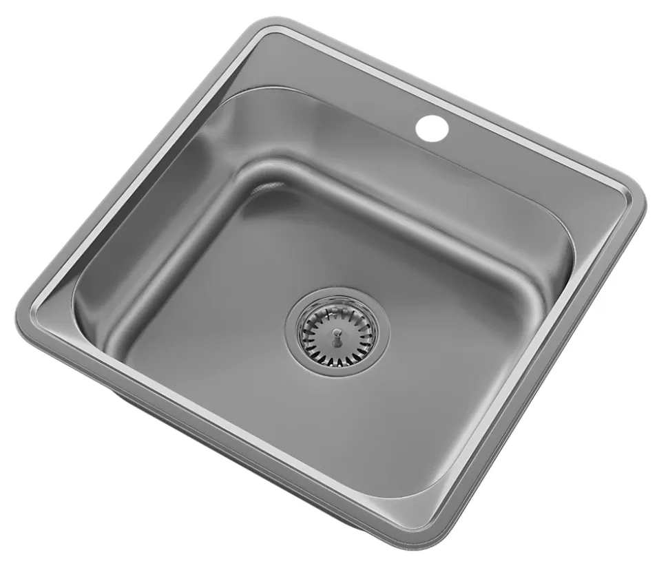 Évier en acier TURI48 avec un bac et siphon – La perfection pour votre cuisine Découvrez une solution moderne et fonctionnelle pour votre cuisine avec l’évier en acier TURI48 de Granitan. Cet élégant évier en acier inoxydable de haute qualité allie style et durabilité. Sa surface est dotée d’une structure micro décor unique qui, en plus d’être esthétiquement agréable, résiste aux rayures et aux dommages. Grâce à son design intemporel et polyvalent, cet évier s’intègre parfaitement aussi bien dans une cuisine traditionnelle que moderne. Avec des dimensions compactes de 480 x 480 mm, il est idéal pour les meubles de cuisine à partir de 50 cm de largeur.Une conception de haute qualité et pratique L’évier TURI48 est équipé d’un trou pré-percé pour un robinet de cuisine et est livré avec un siphon manuel en chrome, qui renforce l’aspect moderne du produit. Cet évier résiste à des températures élevées et aux chocs thermiques. Il est également doté d’un tapis d’isolation acoustique, rendant son utilisation plus silencieuse et confortable. Sa construction robuste lui permet de résister aux impacts, aux rayures et aux décolorations, garantissant une utilisation durable.Caractéristiques techniques – Série : TURI – Type : Encastrable – Nombre de bacs : 1 – Matériau : Acier inoxydable – Couleur : Chrome (micro décor) – Marque : Granitan – Forme : Carrée – Dimensions : 480 x 480 mm – Dimensions du bac : 415 mm x 370 mm – Profondeur du bac : 160 mm – Diamètre de l’orifice de vidange : 92 mm – Convient pour meubles de cuisine d’une largeur minimale de : 50 cm – Poids avec emballage : 2 kg – Contenu de l’ensemble : Évier avec siphon chromé