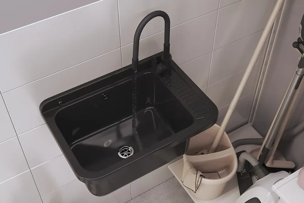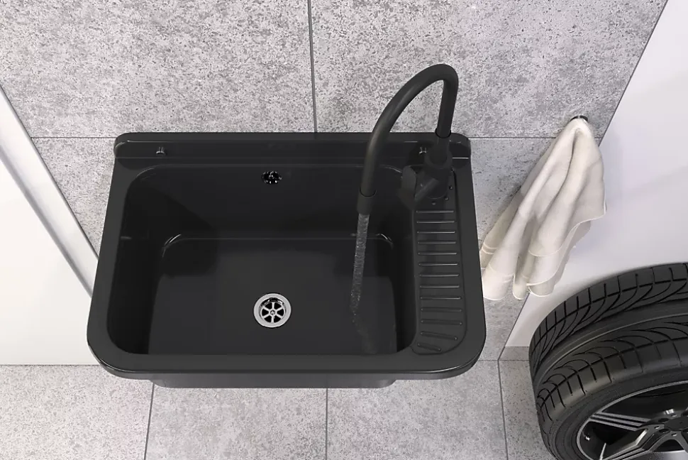 Opis produktuLe lavabo Granitan Negra est une solution pratique et durable, idéale pour une utilisation dans un garage, une buanderie ou une chaufferie. Fabriqué en polypropylène de haute qualité, ce lavabo résiste aux produits chimiques et aux températures élevées. Sa couleur noire donne une touche moderne et élégante, combinant fonctionnalité et esthétique. Avec son design universel, il s’intègre aussi bien dans des espaces domestiques que publics, offrant un accès pratique à l’eau pour diverses tâches quotidiennes.Najważniejsze cechyMatériau durable : fabriqué en polypropylène résistantCouleur noire moderne et éléganteLivré avec un siphon doté d’une connexion supplémentaire pour lave-linge ou lave-vaisselleRobinet mélangeur noir avec bec flexible et rotation à 360°Installation facile grâce à un kit complet de montageUtilisation intérieure et extérieureDlaczego warto?Le lavabo Granitan Negra est conçu pour durer et offrir un usage flexible dans différents environnements. Son kit complet, comprenant un siphon pratique et un robinet mélangeur, garantit une installation simple et rapide. Ce produit allie fonctionnalité et esthétique, tout en étant adapté à divers besoins grâce à sa robustesse et sa résistance. Il représente un excellent choix pour ceux qui recherchent une solution fiable et pratique tout en souhaitant une touche de modernité pour leurs espaces.