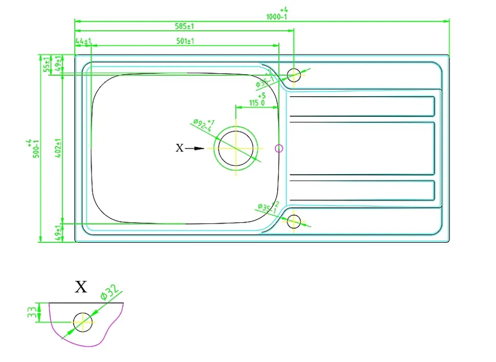 Évier en inox finition nid d’abeille 1 bac à encastrer Lyell