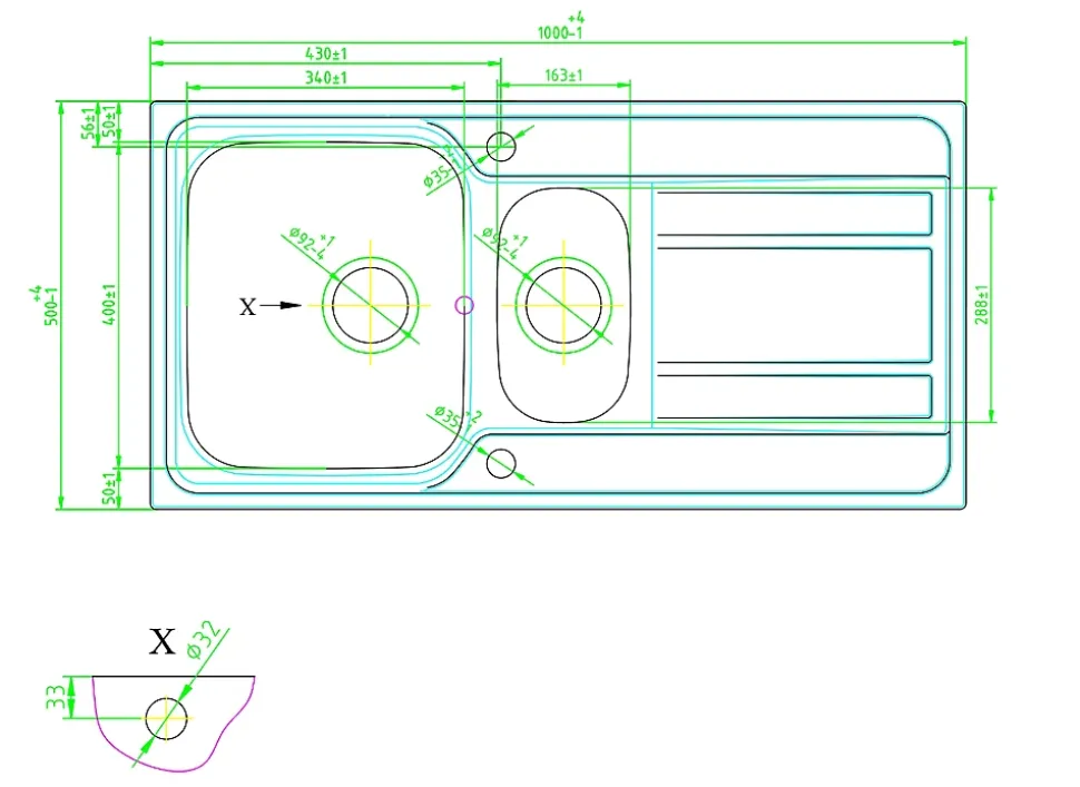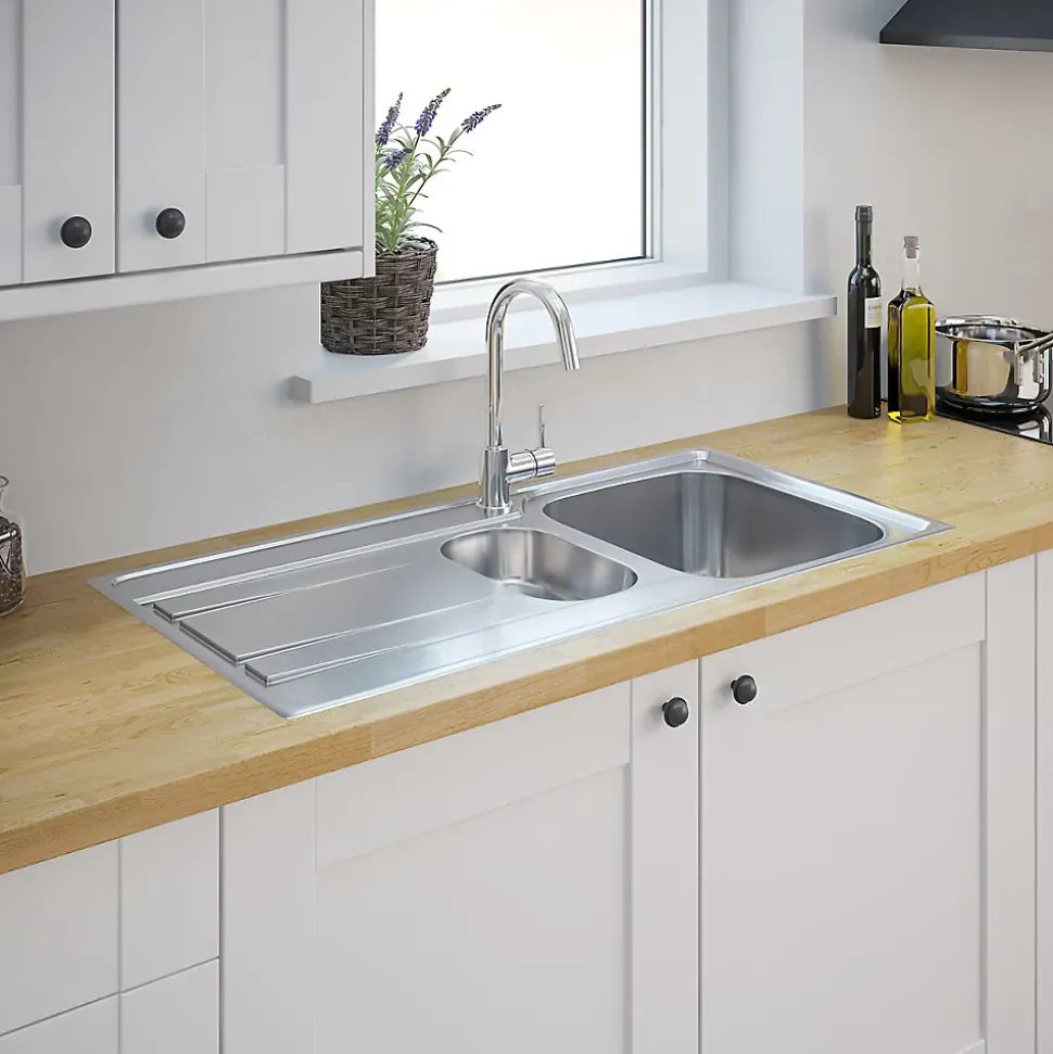 - L’évier comprend un égouttoir et est donc idéal pour ceux ayant besoin d’espace pour sécher la vaisselle