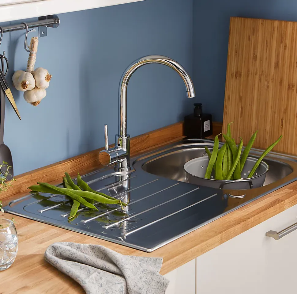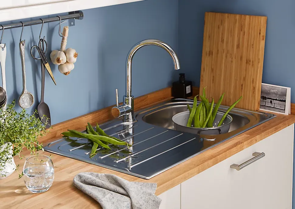 - Evier à encastrer en Acier inoxydable avec Couvercle pour le trou de robinetterie, joint monté en usine et clips de fixation
