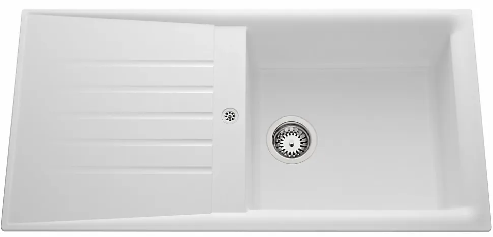– Evier en Naturalite à encastrer 1 bac, 1 égouttoir SLAVE – Naturalite est un composite: mélange de résines polyester, de charges minérales et de fibres de verre longues- Très grande résistance aux rayures, à la chaleur, aux produits chimiques usuels, aux chocs, aux UV- Livré avec vidage manuel- Bonde de Ø 90- Réversible Dimensions et Poids : – Longueur: 1000 mm- Largeur: 500 mm- Profondeur: 185 mm- Poids: 7,1 Kg Garantie: 2 ans contre vices de fabrication,hors pièces d’usure (hors accessoires et vidage).