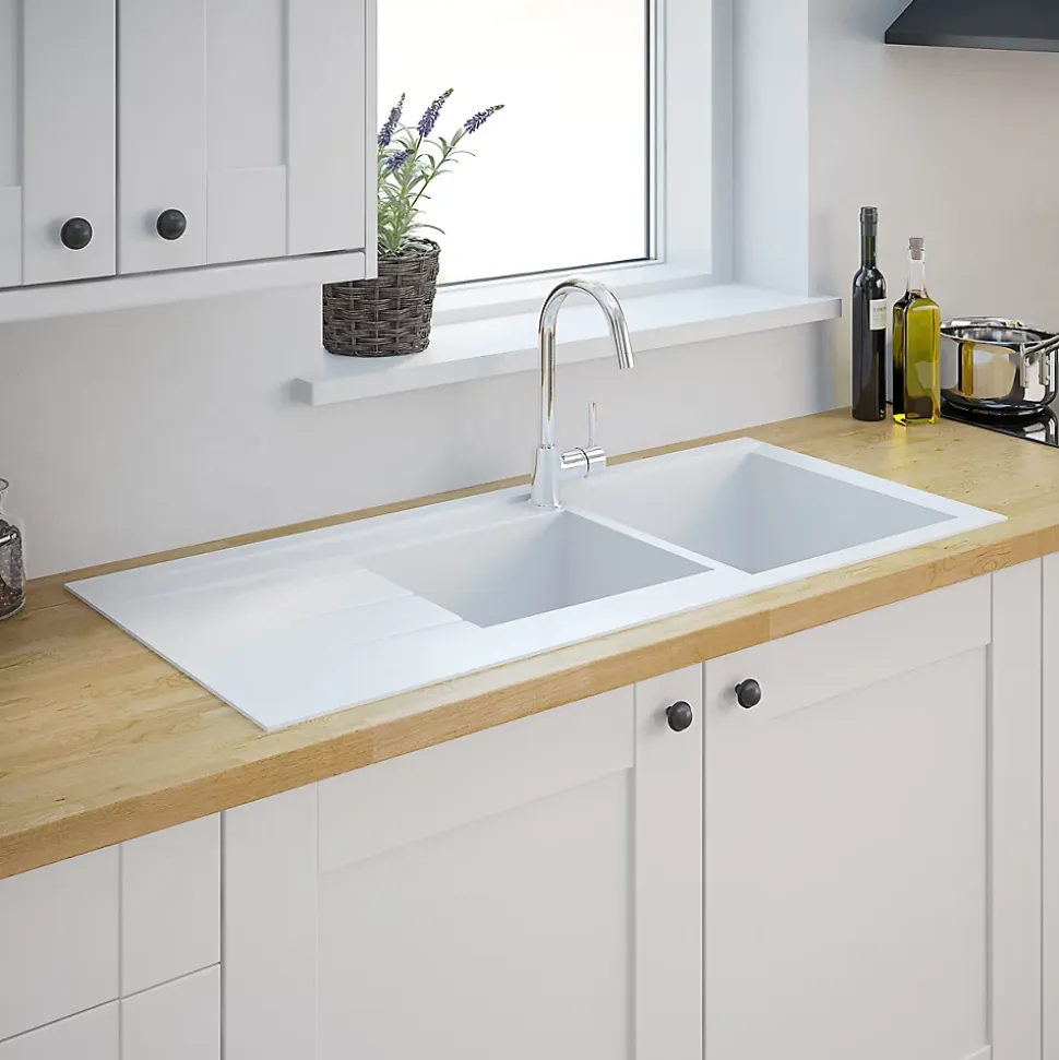 Évier en résine blanche mat 2 bacs à encastrer Ising