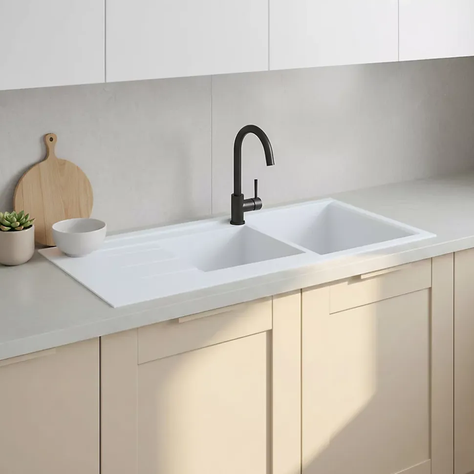 L’évier Ising est conçu pour allier esthétisme, praticité et robustesse. Avec sa finition blanche mate et son design épuré, il s’intègre parfaitement aux cuisines modernes comme classiques. Son format 2 bacs offre une solution pratique au quotidien, idéale pour optimiser l’espace.