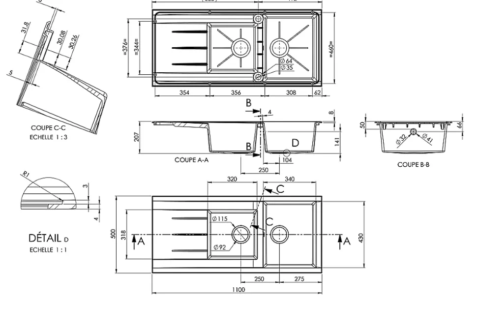 - Dimensions encastrement : (L) 110 cm x (l) 50 cm