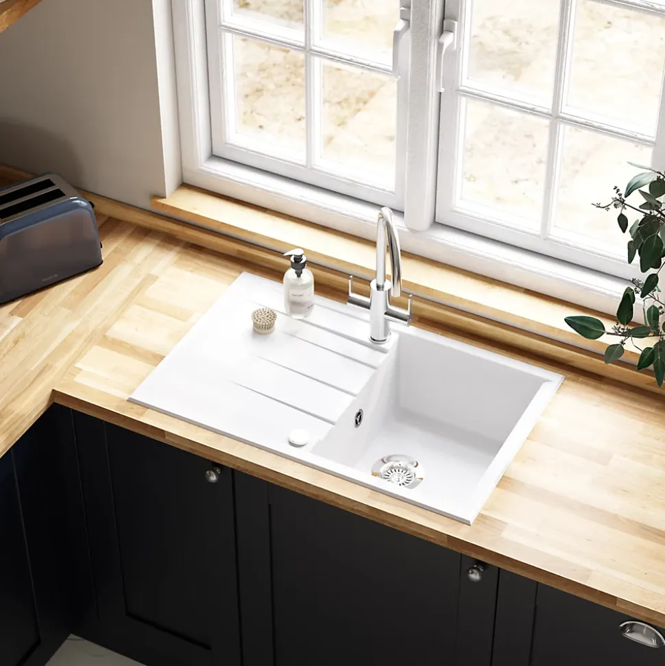 Évier en résine blanche mate 1 bac à encastrer Ising
