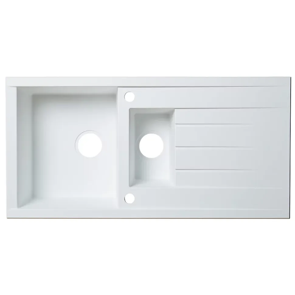 Évier en résine blanche mate 1,5 bacs à encastrer Ising
