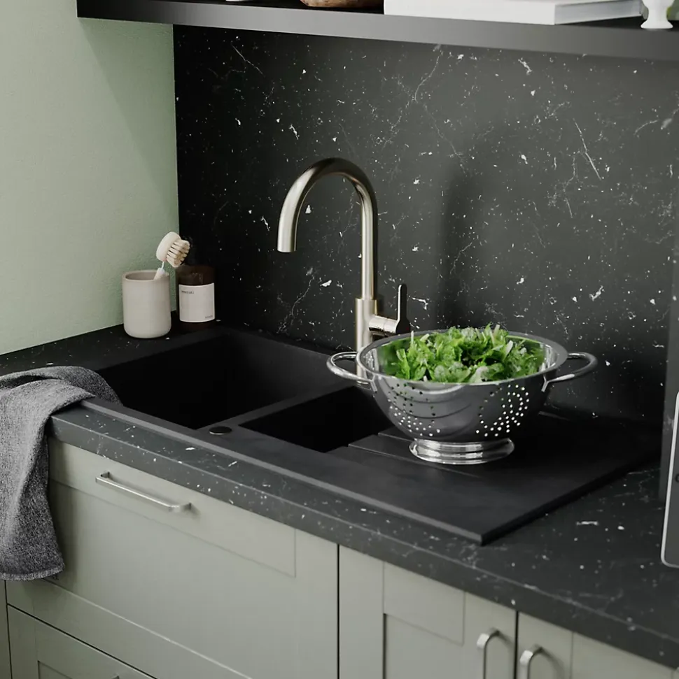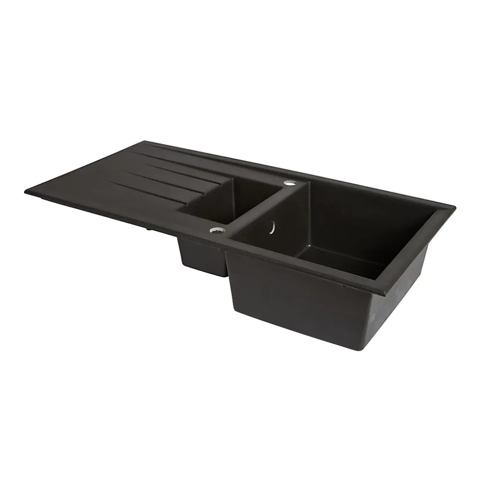Évier en résine noire mate 1,5 bacs à encastrer Ising