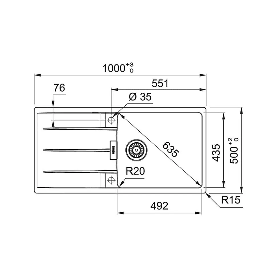 Caractéristiques de la gamme Centro- Evier pré-percé à ø 35 mm pour robinetterie et commande de vidage- Vidage automatique avec bouton rotatif chrome et siphon- Evier réversible- Rayons de 20 mm dans les angles de la cuve et contours de l’évier fins d’une épaisseur de seulement 6mm- Garantie 10 ans sur Fragranit +- Traitement anti-bactérien pour une hygiène parfaiteCaractéristiques techniques du CNG611-XLFinition Fragranit +Sous meuble 600 mmDécoupe 980 x 480 mm (R15)Bassin 492 x 435 x 200 mmDimensions 1000 x 500 mm—Le Fragranit+ est un matériau intemporel et très résistant.De nombreuses couleurs sont proposées, vous n’aurez pas de mal à trouver celle qui vous conviendra.Composition80% de granit naturel de haute qualité venant d’Allemagne et 20% de résine acrylique, chimiquement inerte qui rend la surface robuste et les couleurs lumineuses (grâce aux effets des cristaux de verre).Efficace contre les bactériesLes particules de granit sont si petites que les germes n’ont pas de place pour se développer. Cela rend la surface parfaitement hygiénique. De plus, le traitement Sanitized réduit le développement des bactéries et microbes jusqu’à 99%.<span style= »col