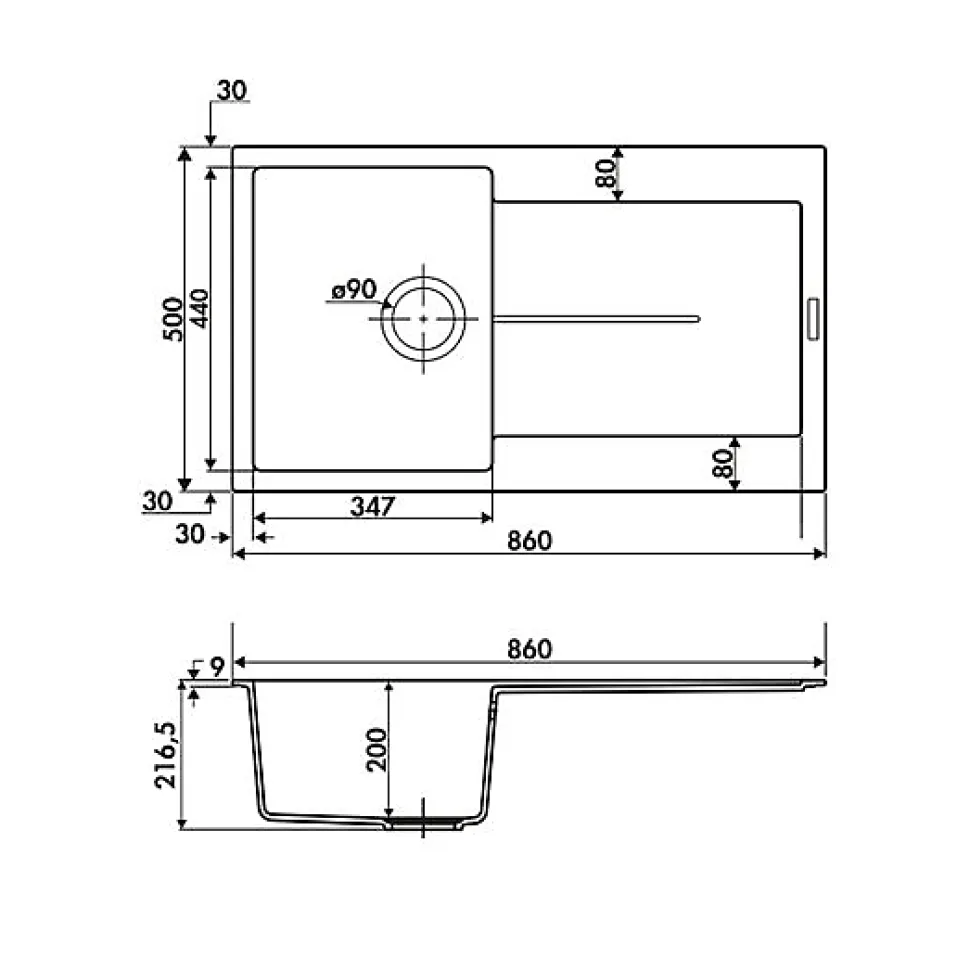 - Évier encastrable 86×50 cm