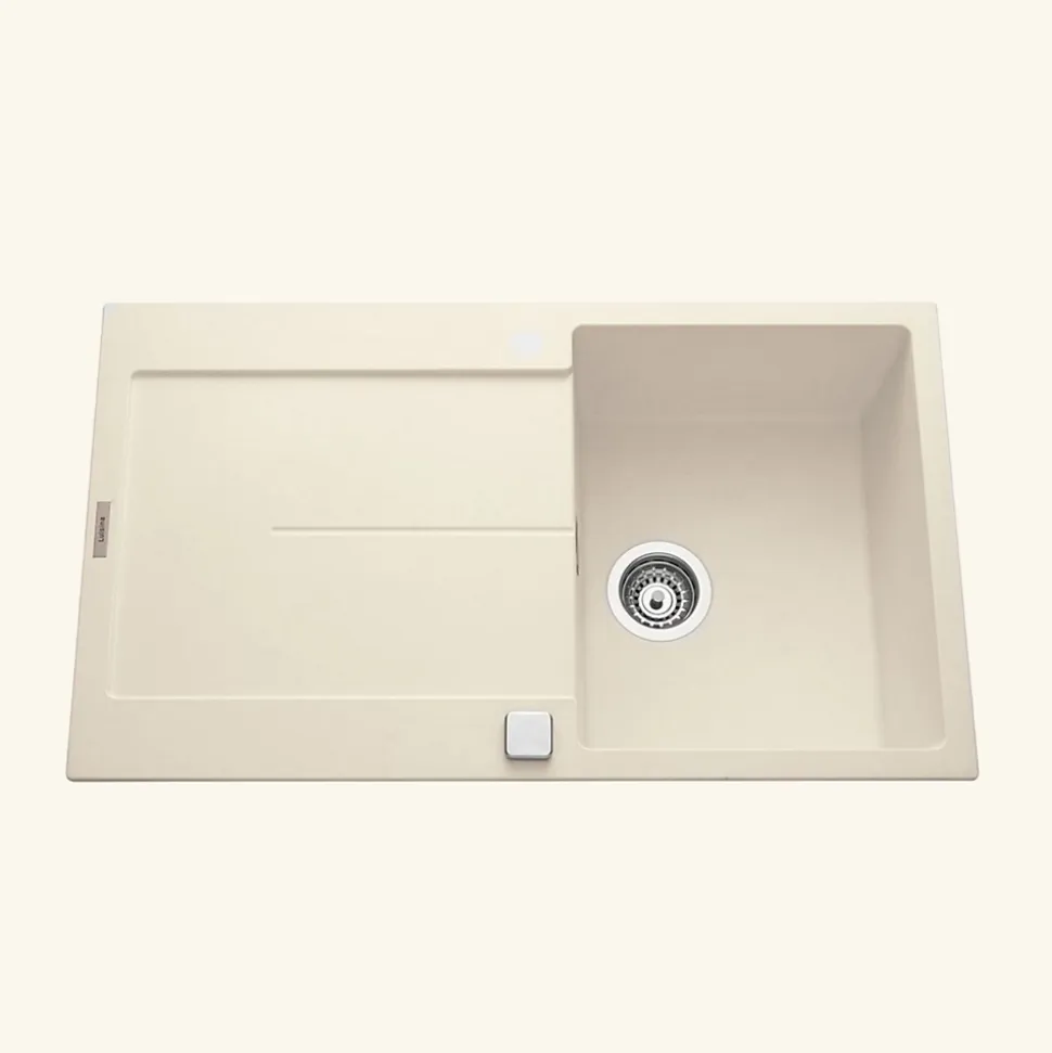 POINTS FORTS : • Évier encastrable 86×50 cm •• Meuble sous évier 50 cm minimum •• Evier vidage manuel •• Évier réversible CARACTÉRISTIQUES : • Équipements inclus : bonde(s), siphon, trop plein, tuyaux d’évacuation • Marque : Luisina • Matériau : Granit • Type de pose : à encastrer • Positionnement égouttoir : réversible • Coloris : Beige • Emplacement robinetterie : pré-marqué • Nombre de bacs : 1 bac • Poids net (Kg) : 13.82 • Trop plein : oui • Sous-meuble : 50 cm • Longueur (mm) : 860 • Largeur (mm) : 500 • Longueur d’encastrement (mm) : 840 • Largeur d’encastrement (mm) : 480 • Grande dimension cuve 1 (mm) : 440 • Petite dimension cuve 1 (mm) : 347 • Profondeur cuve 1 (mm) : 200 • Diamètre bonde cuve 1 (mm) : 90 • Grande dimension cuve 2 (mm) : non disponible • Petite dimension cuve 2 (mm) : non disponible • Profondeur cuve 2 (mm) : non disponible • Diamètre bonde cuve 2 (mm) : non disponible • Bon à savoir : Livré avec un vidage chromé. Kit vidage doré (CUIPD666-A, en 3663019057846) ou cuivré (CUIPD667-A, ean 3663019057853) en option. • Vidage : manuel • Référence vidage : le vidage est déjà inclus