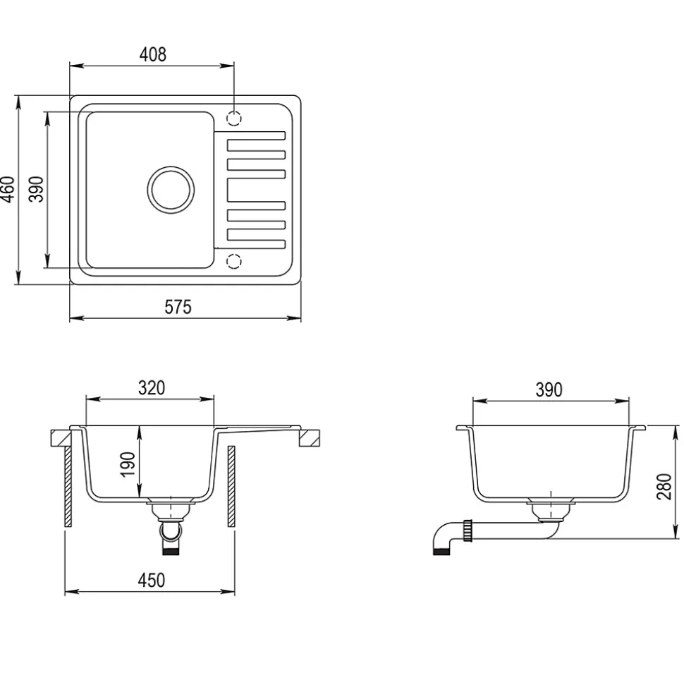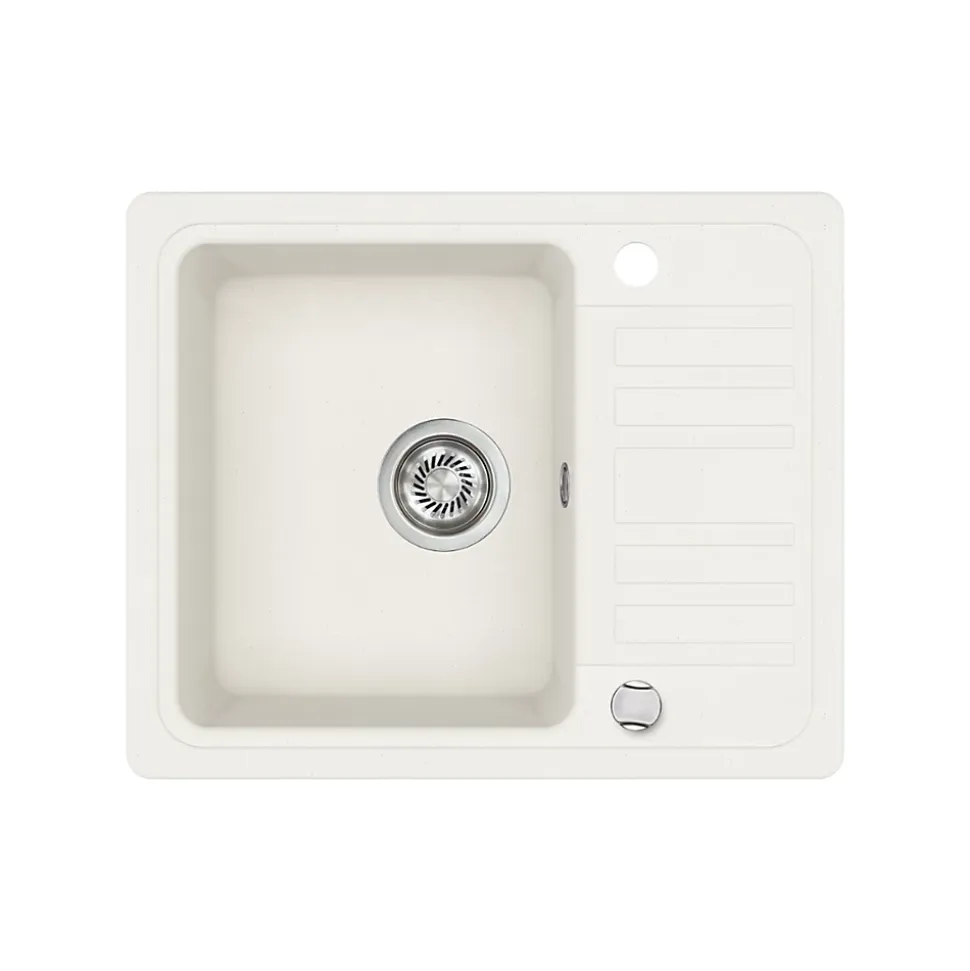 POINTS FORTS : • Évier encastrable 57,5×46 cm • • Meuble sous évier 45 cm minimum• • Evier vidage automatique • • Evier réversible CARACTÉRISTIQUES : • Équipements inclus : bonde(s), siphon, trop plein, tuyaux d’évacuation • Marque : Helika • Matériau : Granit • Type de pose : à encastrer • Positionnement égouttoir : réversible • Coloris : Blanc • Emplacement robinetterie : percé • Nombre de bacs : 1 bac • Poids net (Kg) : 14.0 • Trop plein : oui • Sous-meuble : 45 cm • Longueur (mm) : 575 • Largeur (mm) : 460 • Longueur d’encastrement (mm) : 555 • Largeur d’encastrement (mm) : 440 • Grande dimension cuve 1 (mm) : 390 • Petite dimension cuve 1 (mm) : 320 • Profondeur cuve 1 (mm) : 190 • Diamètre bonde cuve 1 (mm) : 90 • Grande dimension cuve 2 (mm) : non disponible • Petite dimension cuve 2 (mm) : non disponible • Profondeur cuve 2 (mm) : non disponible • Diamètre bonde cuve 2 (mm) : non disponible • Bon à savoir : ce produit ne présente pas de spécificités supplémentaires • Vidage : automatique • Référence vidage : le vidage est déjà inclus