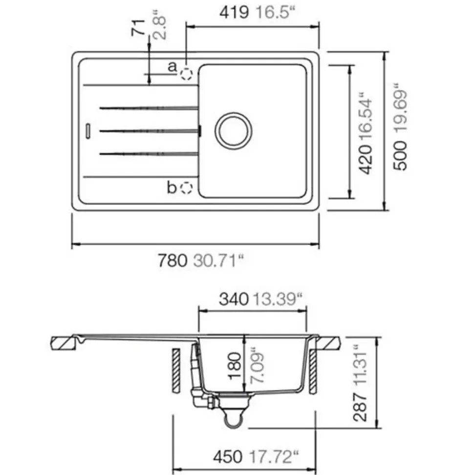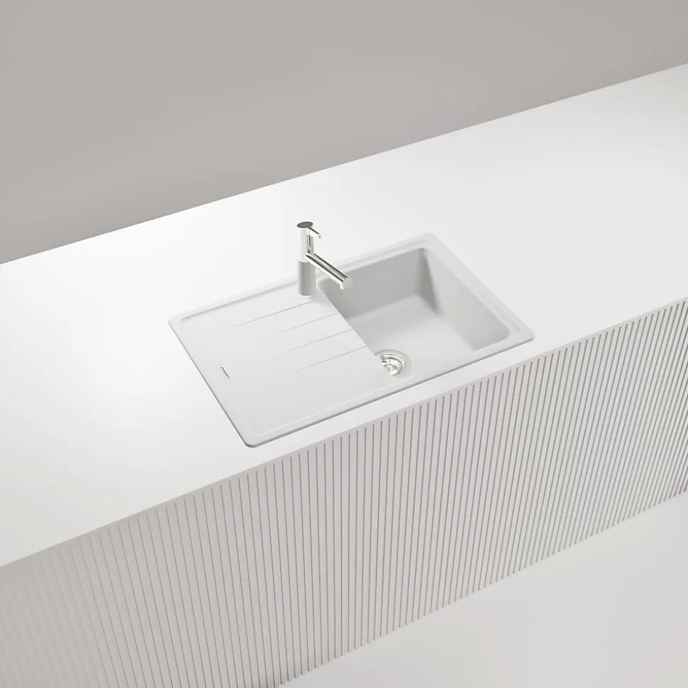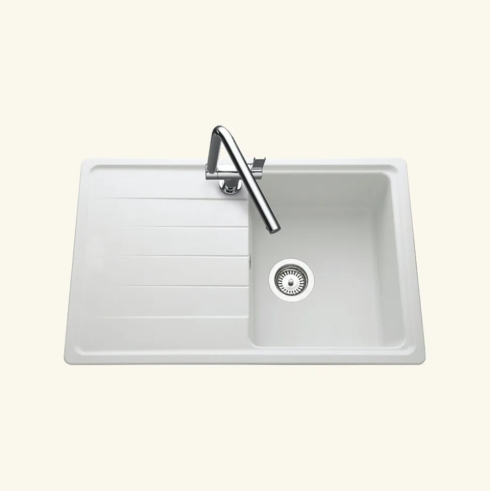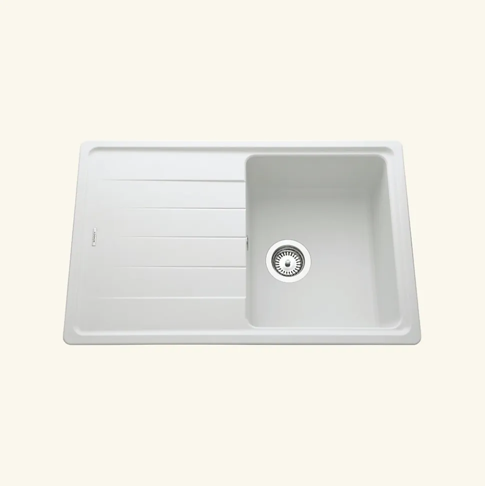 POINTS FORTS : • Évier encastrable 78×50 cm • • Evier vidage manuel • • Meuble sous évier 45 cm minimum • • Évier réversible fabriqué en Allemagne CARACTÉRISTIQUES : • Équipements inclus : bonde(s), siphon, trop plein, tuyaux d’évacuation • Marque : Schock • Matériau : Granit • Type de pose : à encastrer • Positionnement égouttoir : réversible • Coloris : Blanc • Emplacement robinetterie : pré-marqué • Nombre de bacs : 1 bac • Poids net (Kg) : 10.1 • Trop plein : oui • Sous-meuble : 45 cm • Longueur (mm) : 780 • Largeur (mm) : 500 • Longueur d’encastrement (mm) : 760 • Largeur d’encastrement (mm) : 480 • Grande dimension cuve 1 (mm) : 420 • Petite dimension cuve 1 (mm) : 340 • Profondeur cuve 1 (mm) : 180 • Diamètre bonde cuve 1 (mm) : 90 • Grande dimension cuve 2 (mm) : non disponible • Petite dimension cuve 2 (mm) : non disponible • Profondeur cuve 2 (mm) : non disponible • Diamètre bonde cuve 2 (mm) : non disponible • Bon à savoir : ce produit ne présente pas de spécificités supplémentaires • Vidage : manuel • Référence vidage : le vidage est déjà inclus