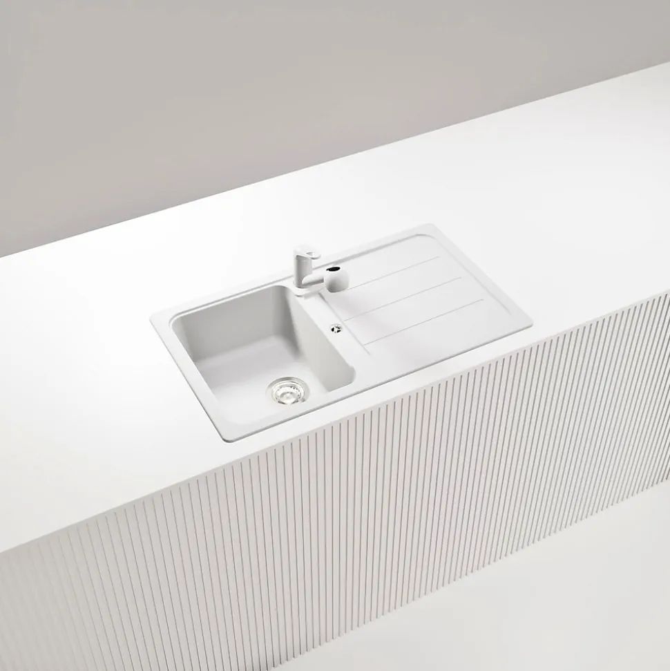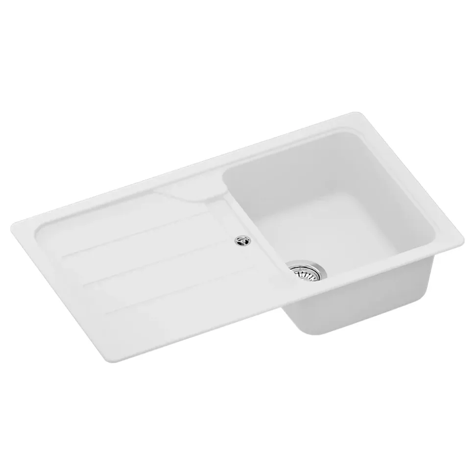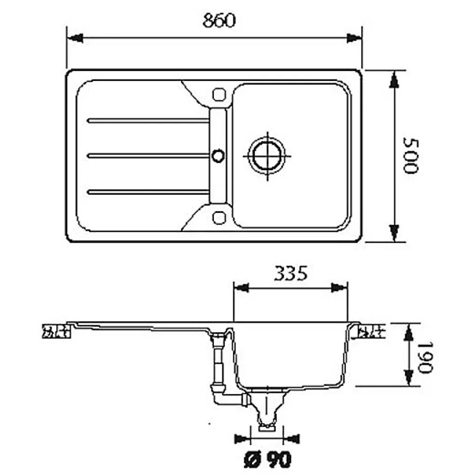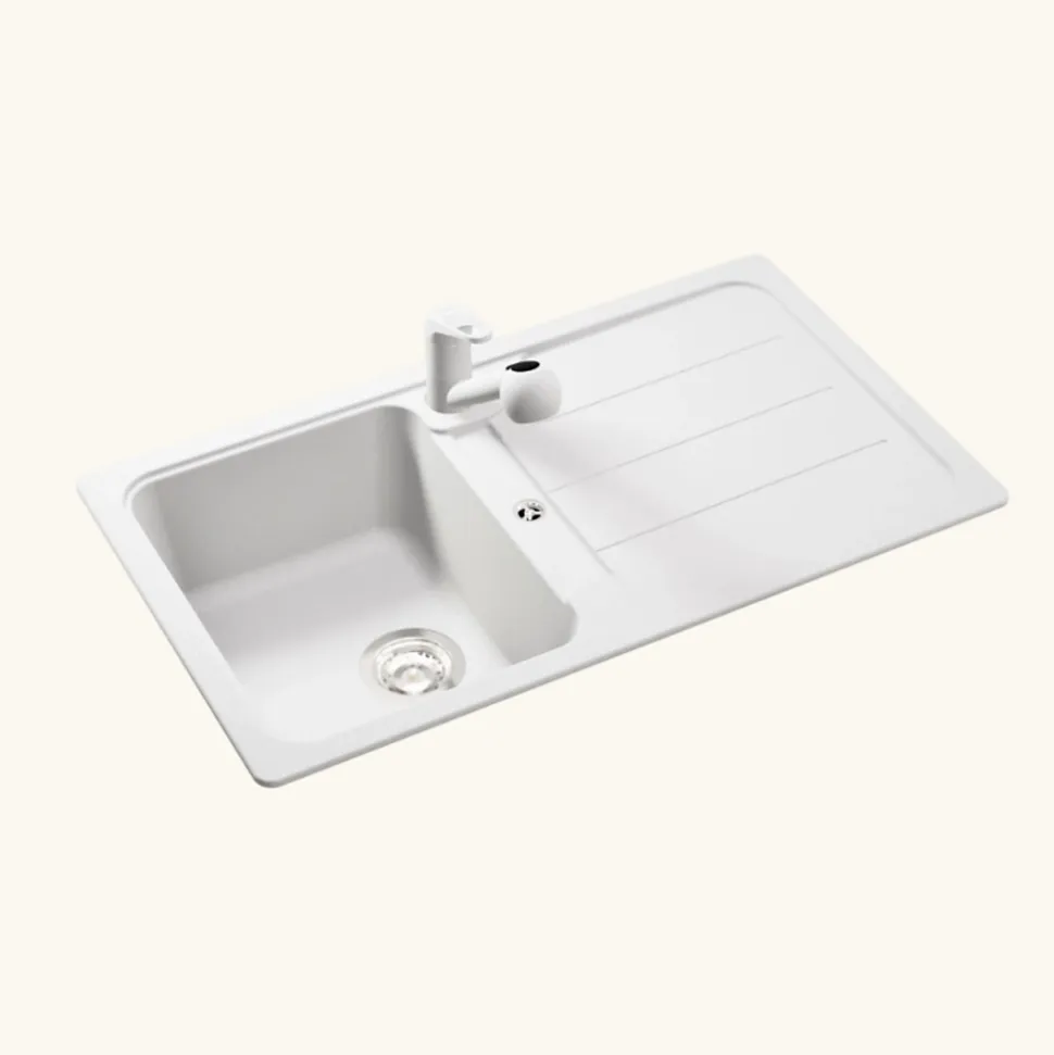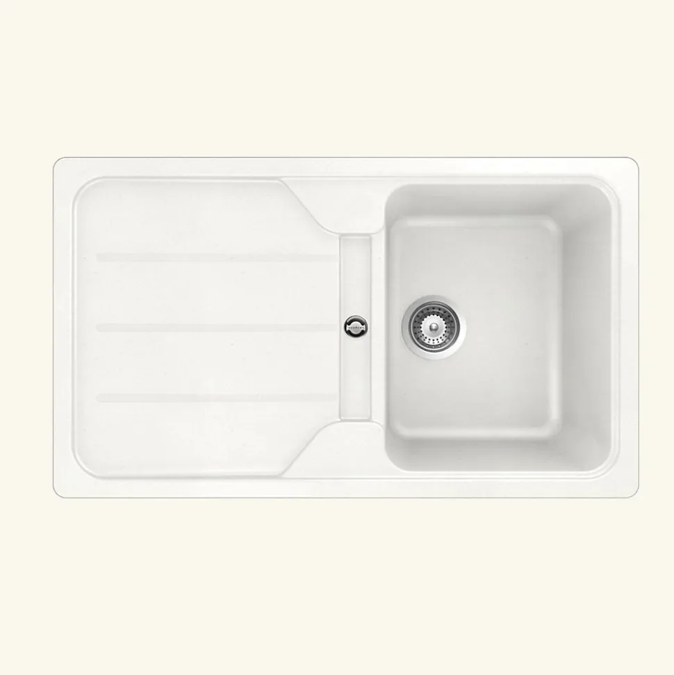POINTS FORTS : • Évier encastrable 86×50 cm •• Evier vidage manuel •• Meuble sous évier 50 cm minimum •• Evier réversible fabriqué en Allemagne CARACTÉRISTIQUES : • Équipements inclus : bonde(s), siphon, trop plein, tuyaux d’évacuation • Marque : Schock • Matériau : Granit • Type de pose : à encastrer • Positionnement égouttoir : réversible • Coloris : Blanc • Emplacement robinetterie : pré-marqué • Nombre de bacs : 1 bac • Poids net (Kg) : 14.2 • Trop plein : oui • Sous-meuble : 45 cm • Longueur (mm) : 860 • Largeur (mm) : 500 • Longueur d’encastrement (mm) : 840 • Largeur d’encastrement (mm) : 480 • Grande dimension cuve 1 (mm) : 420 • Petite dimension cuve 1 (mm) : 335 • Profondeur cuve 1 (mm) : 190 • Diamètre bonde cuve 1 (mm) : 90 • Grande dimension cuve 2 (mm) : non disponible • Petite dimension cuve 2 (mm) : non disponible • Profondeur cuve 2 (mm) : non disponible • Diamètre bonde cuve 2 (mm) : non disponible • Bon à savoir : ce produit ne présente pas de spécificités supplémentaires • Vidage : manuel • Référence vidage : le vidage est déjà inclus