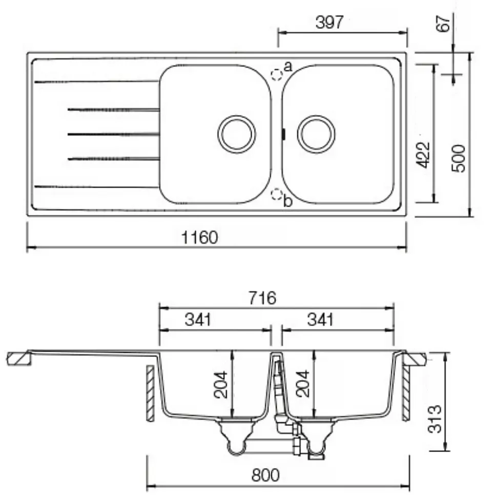 POINTS FORTS : • Évier encastrable 116×50 cm • • Evier vidage manuel • • Meuble sous évier 80 cm minimum • • Évier réversible fabriqué en Allemagne CARACTÉRISTIQUES : • Équipements inclus : bonde(s), siphon, trop plein, tuyaux d’évacuation • Marque : Schock • Matériau : Granit • Type de pose : à encastrer • Positionnement égouttoir : réversible • Coloris : Blanc • Emplacement robinetterie : pré-marqué • Nombre de bacs : 2 bacs • Poids net (Kg) : 20.0 • Trop plein : oui • Sous-meuble : 80 cm • Longueur (mm) : 1160 • Largeur (mm) : 500 • Longueur d’encastrement (mm) : 1140 • Largeur d’encastrement (mm) : 480 • Grande dimension cuve 1 (mm) : 422 • Petite dimension cuve 1 (mm) : 341 • Profondeur cuve 1 (mm) : 204 • Diamètre bonde cuve 1 (mm) : 90 • Grande dimension cuve 2 (mm) : 422 • Petite dimension cuve 2 (mm) : 341 • Profondeur cuve 2 (mm) : 204 • Diamètre bonde cuve 2 (mm) : 90 • Bon à savoir : ce produit ne présente pas de spécificités supplémentaires • Vidage : manuel • Référence vidage : le vidage est déjà inclus